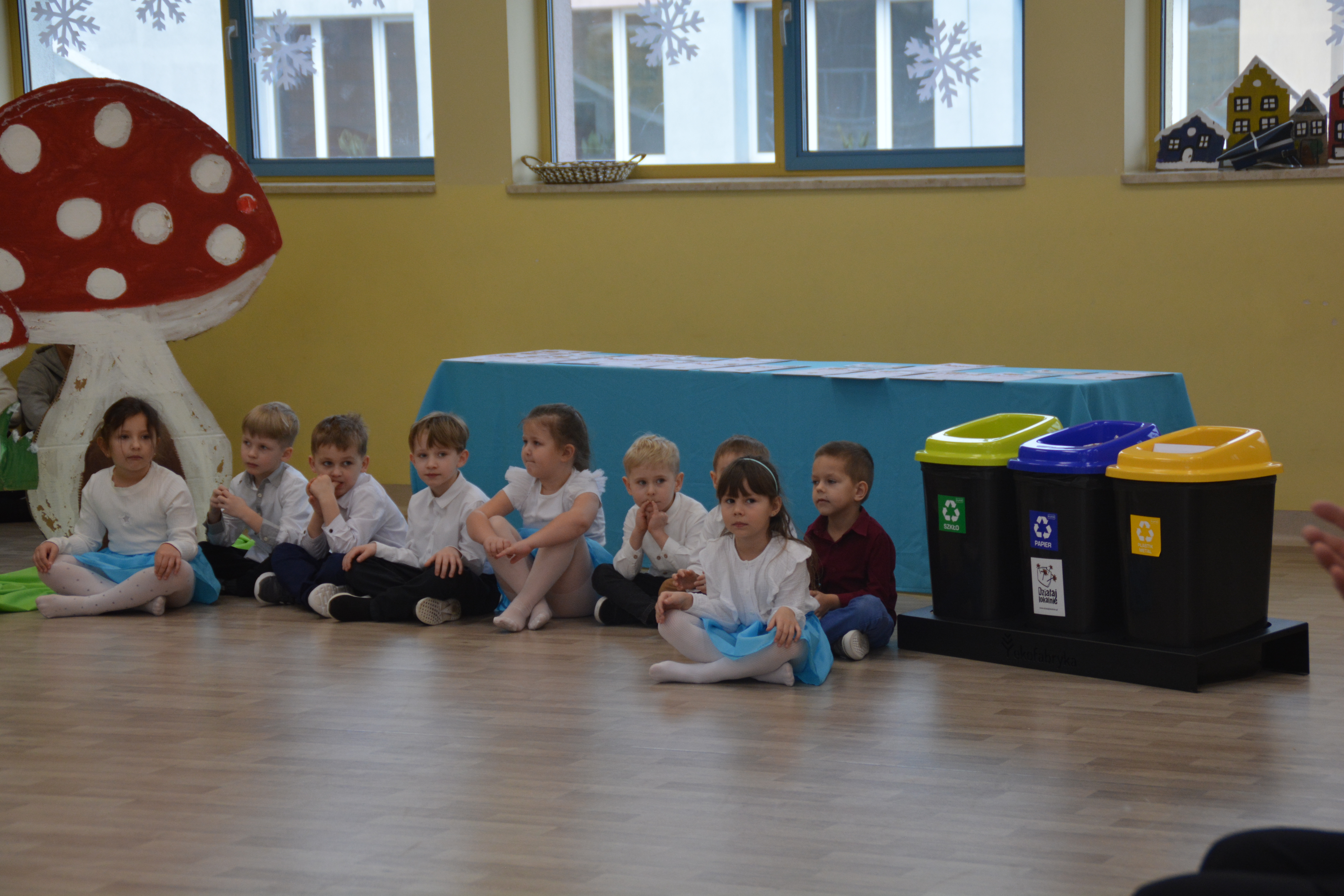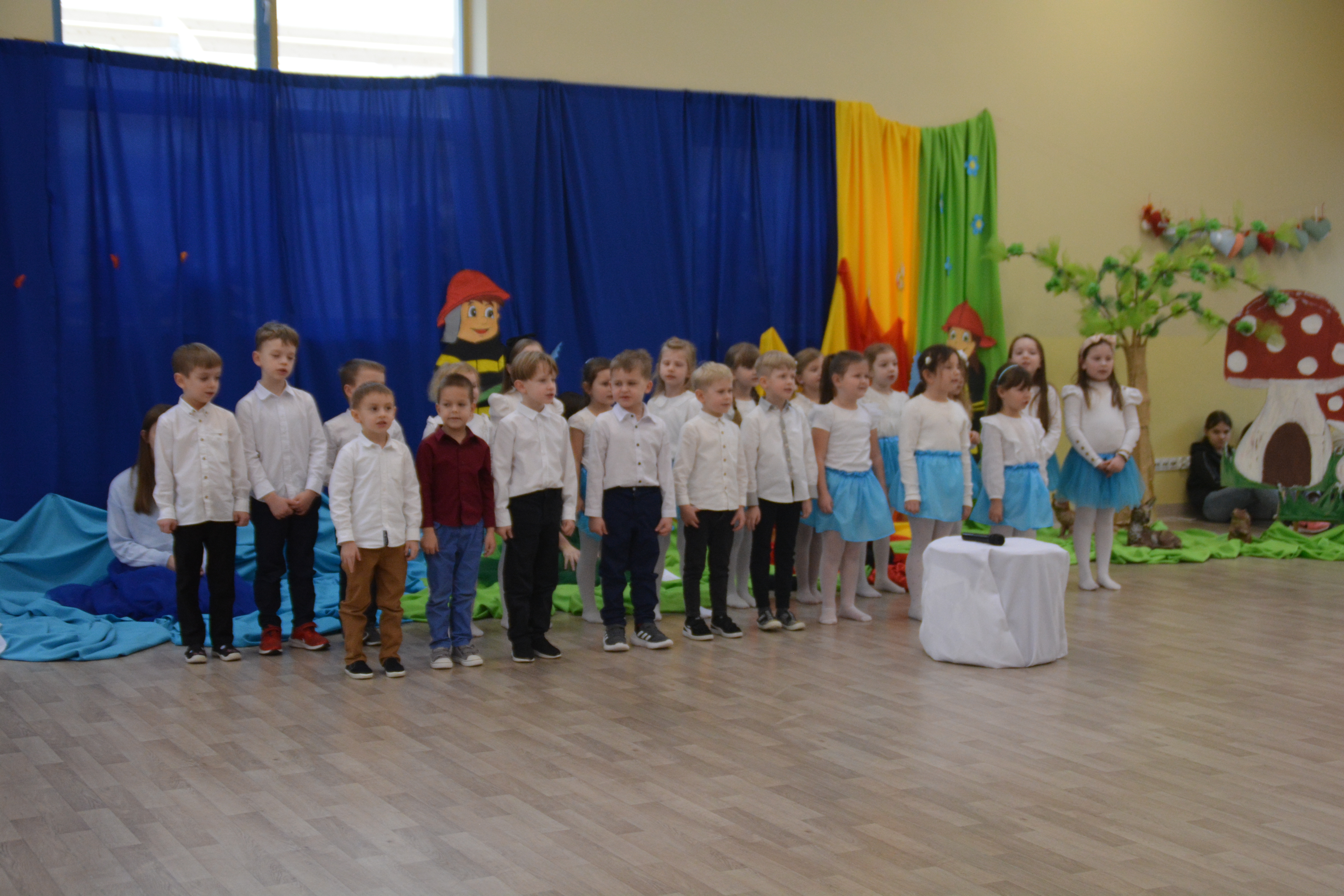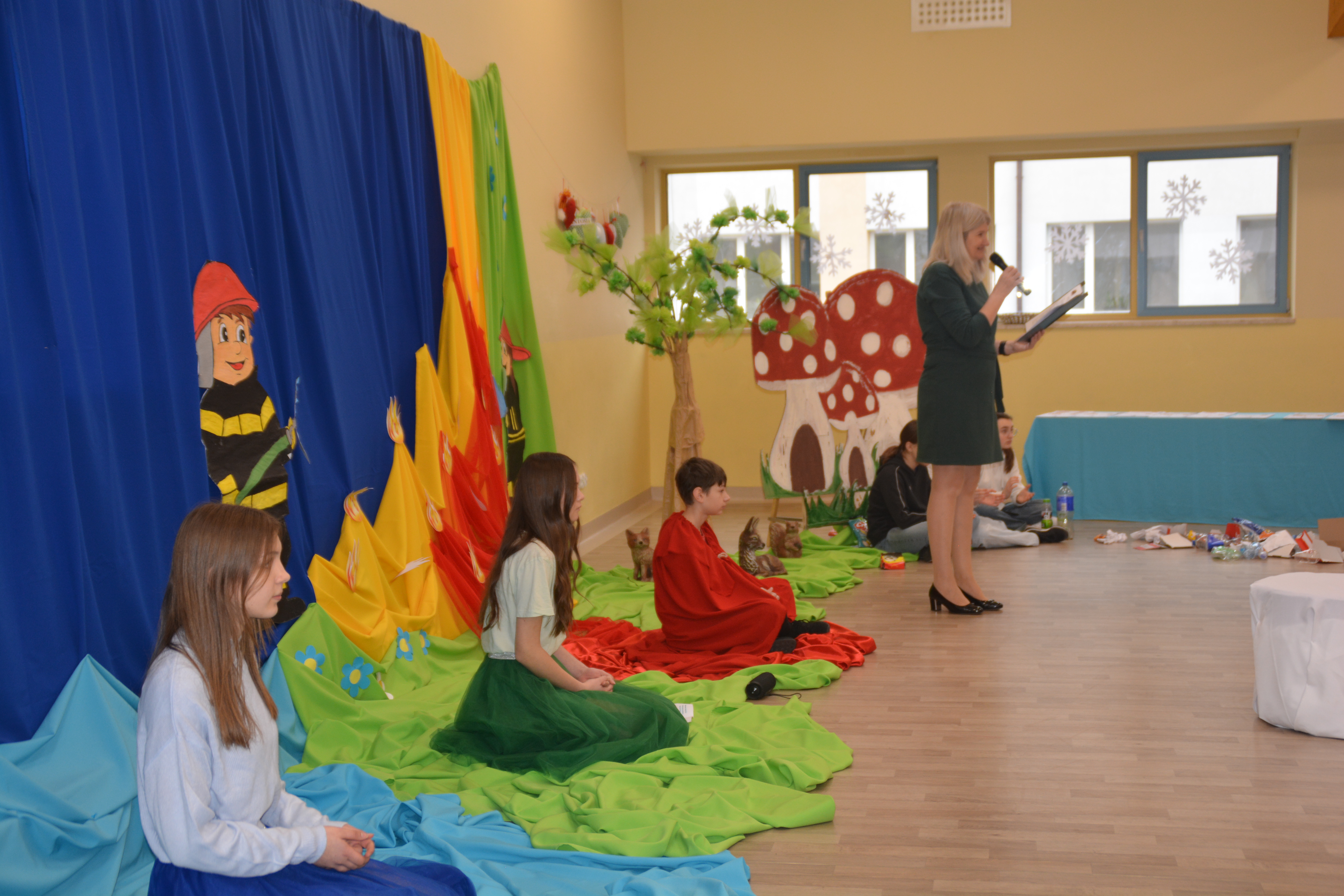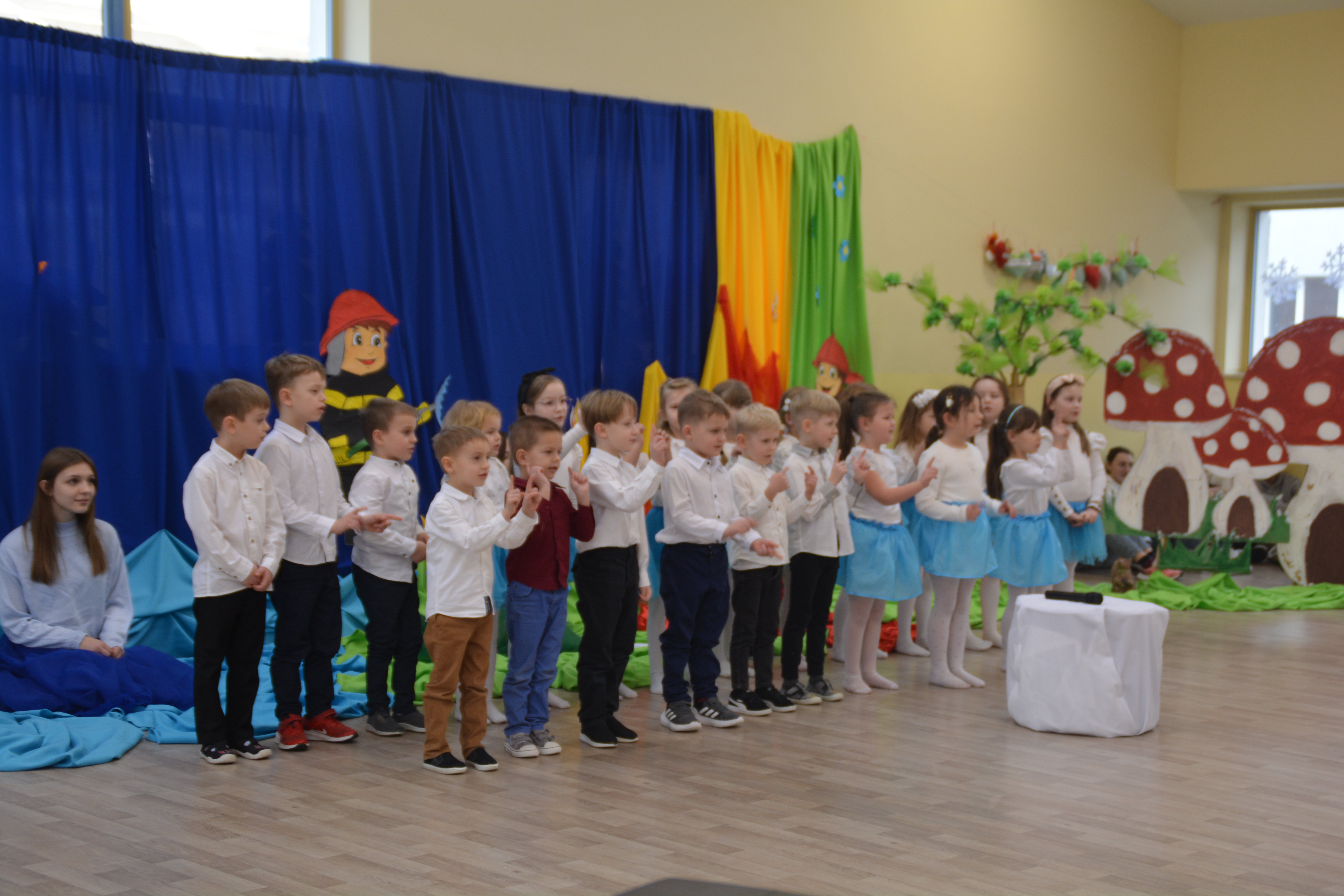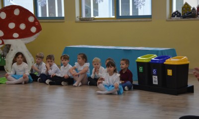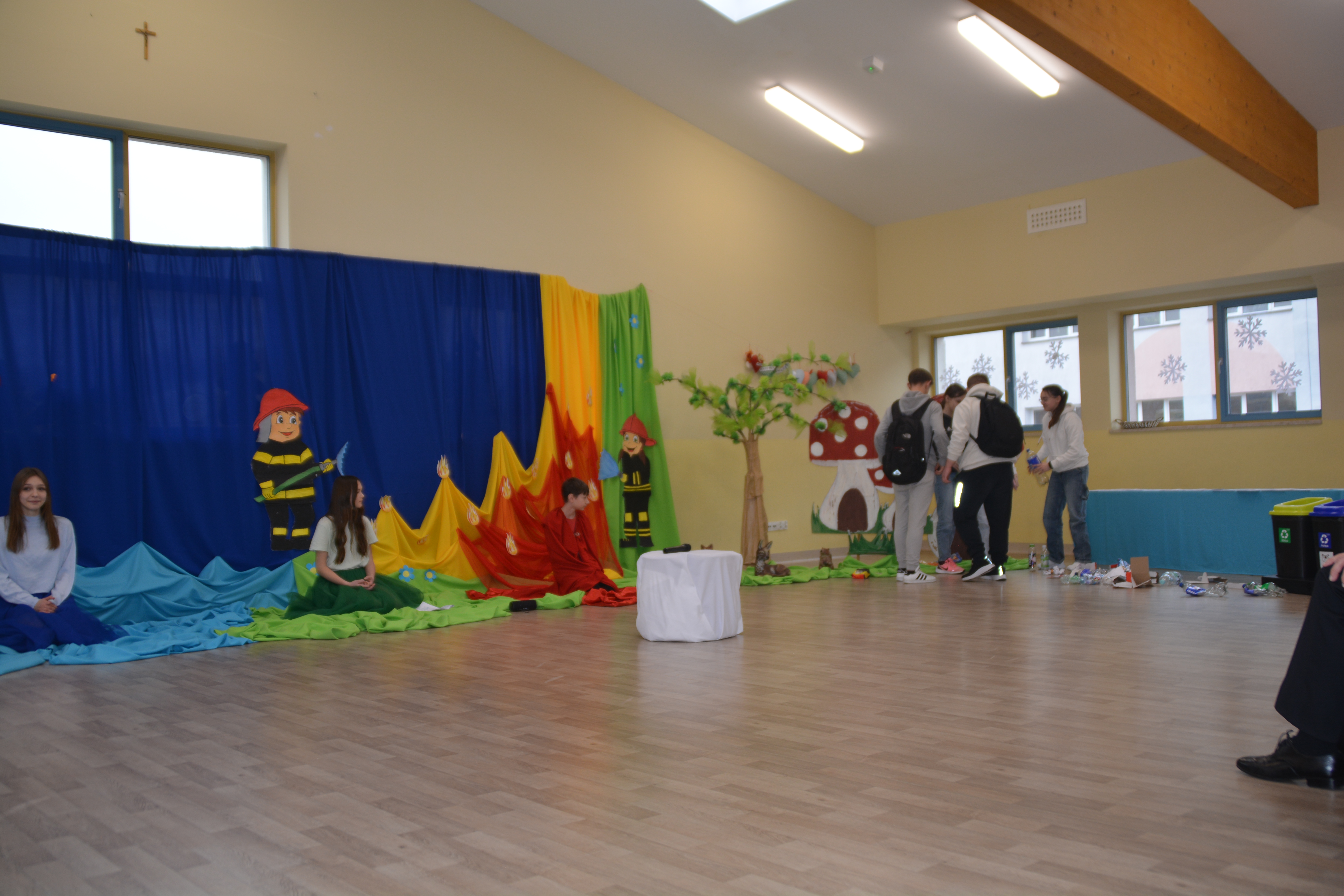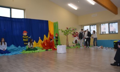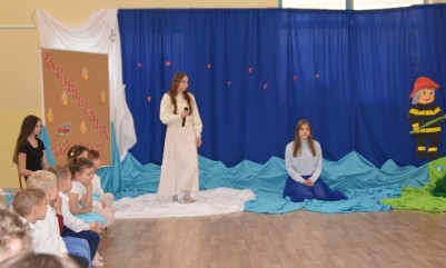 Uczestnicy spotkania obejrzeli przedstawienie „Opowieść o Ziemi”, przygotowane przez uczniów klasy VII i przedszkolaków.