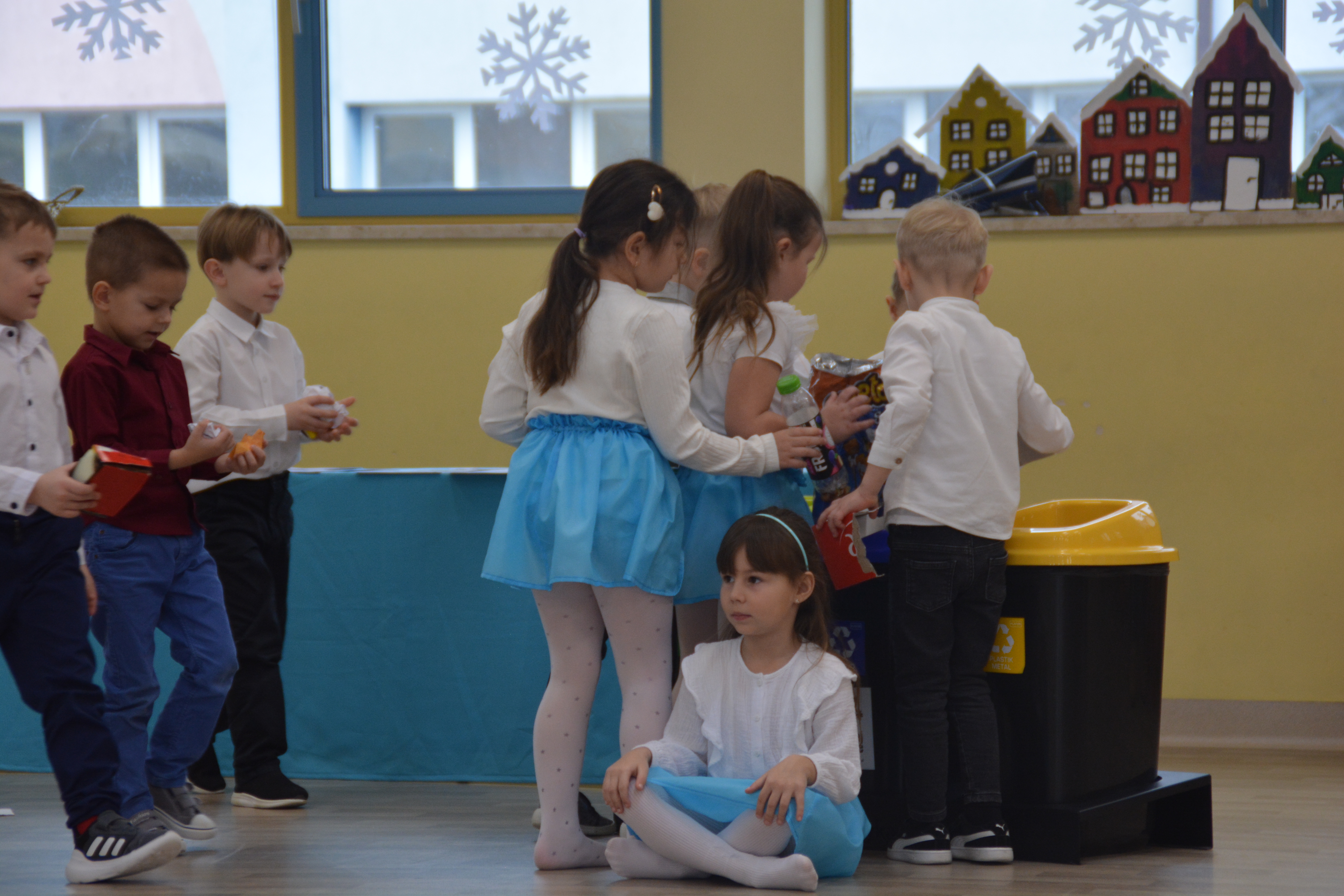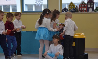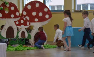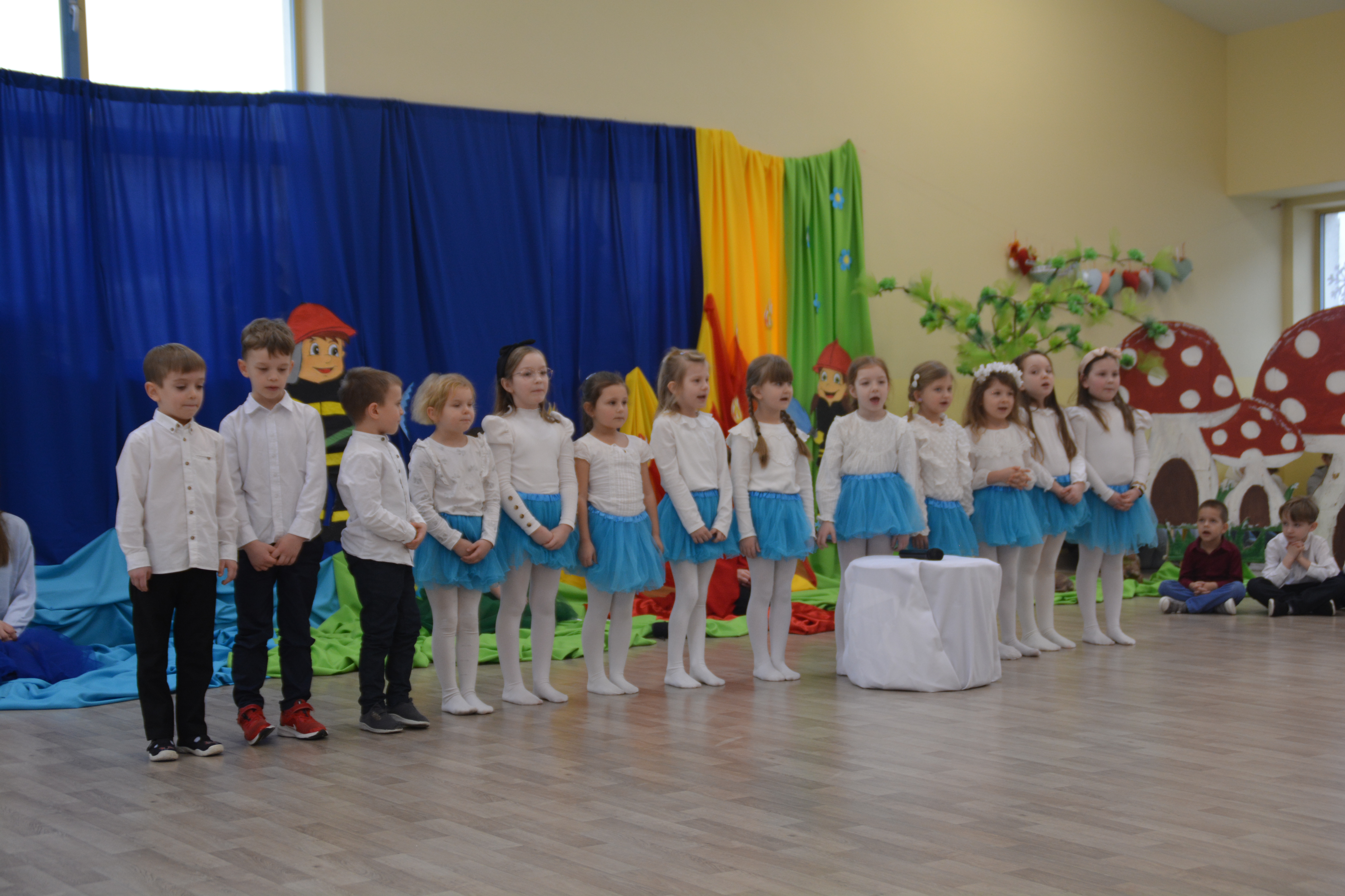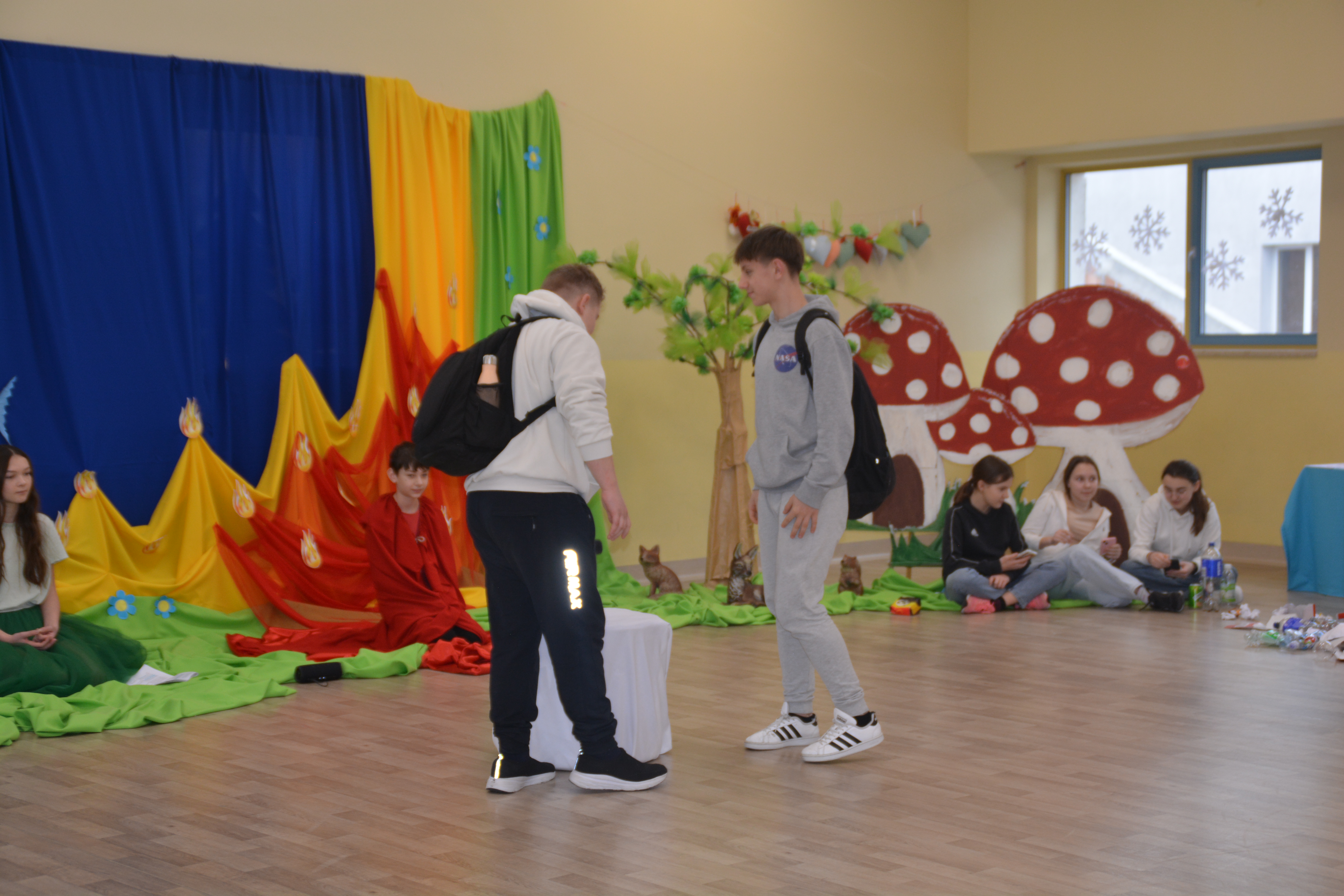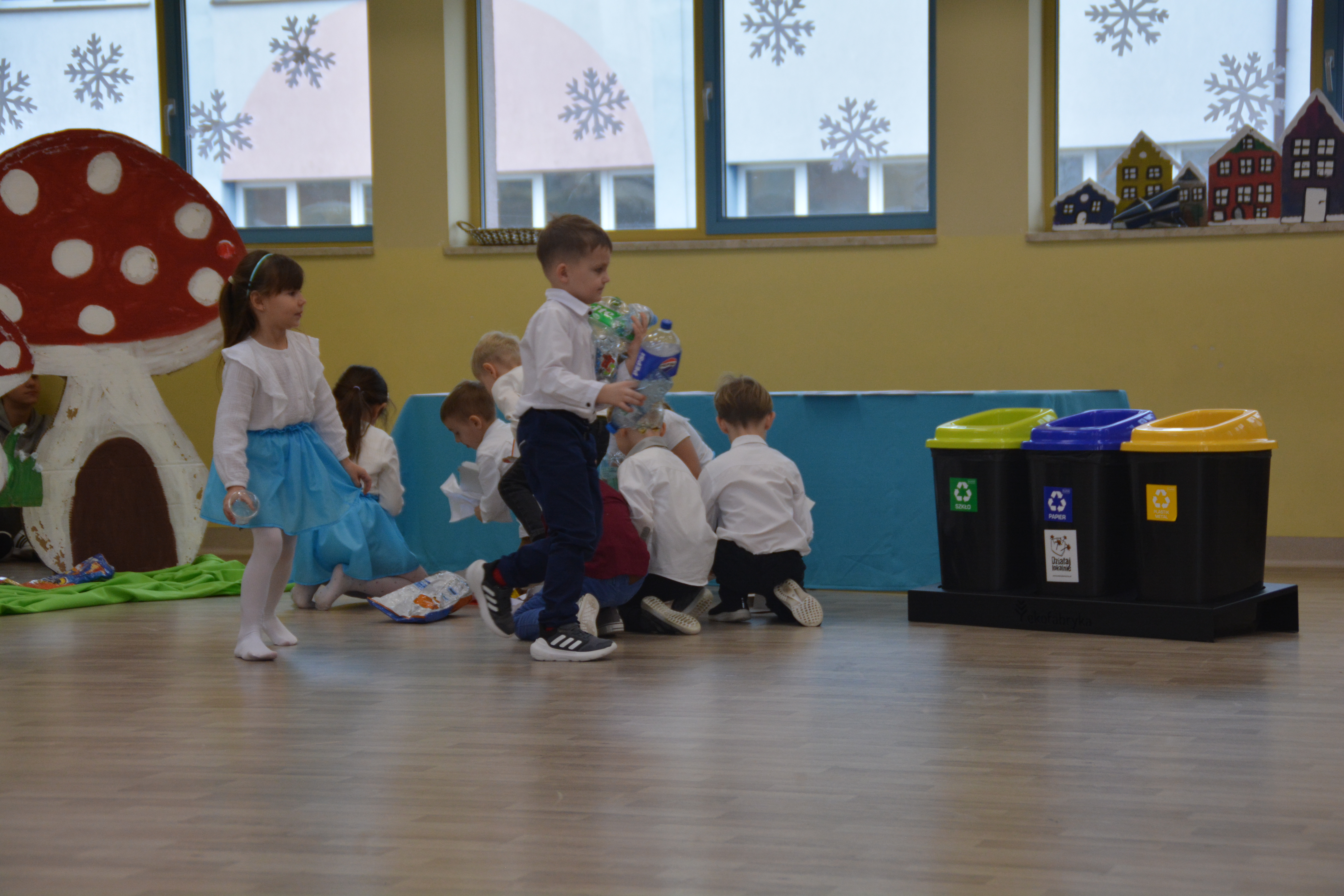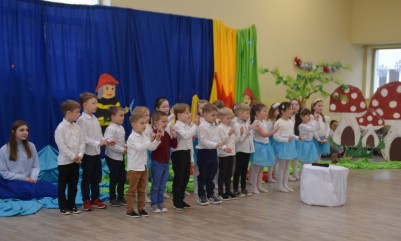 Uczestnicy spotkania obejrzeli przedstawienie „Opowieść o Ziemi”, przygotowane przez uczniów klasy VII i przedszkolaków.