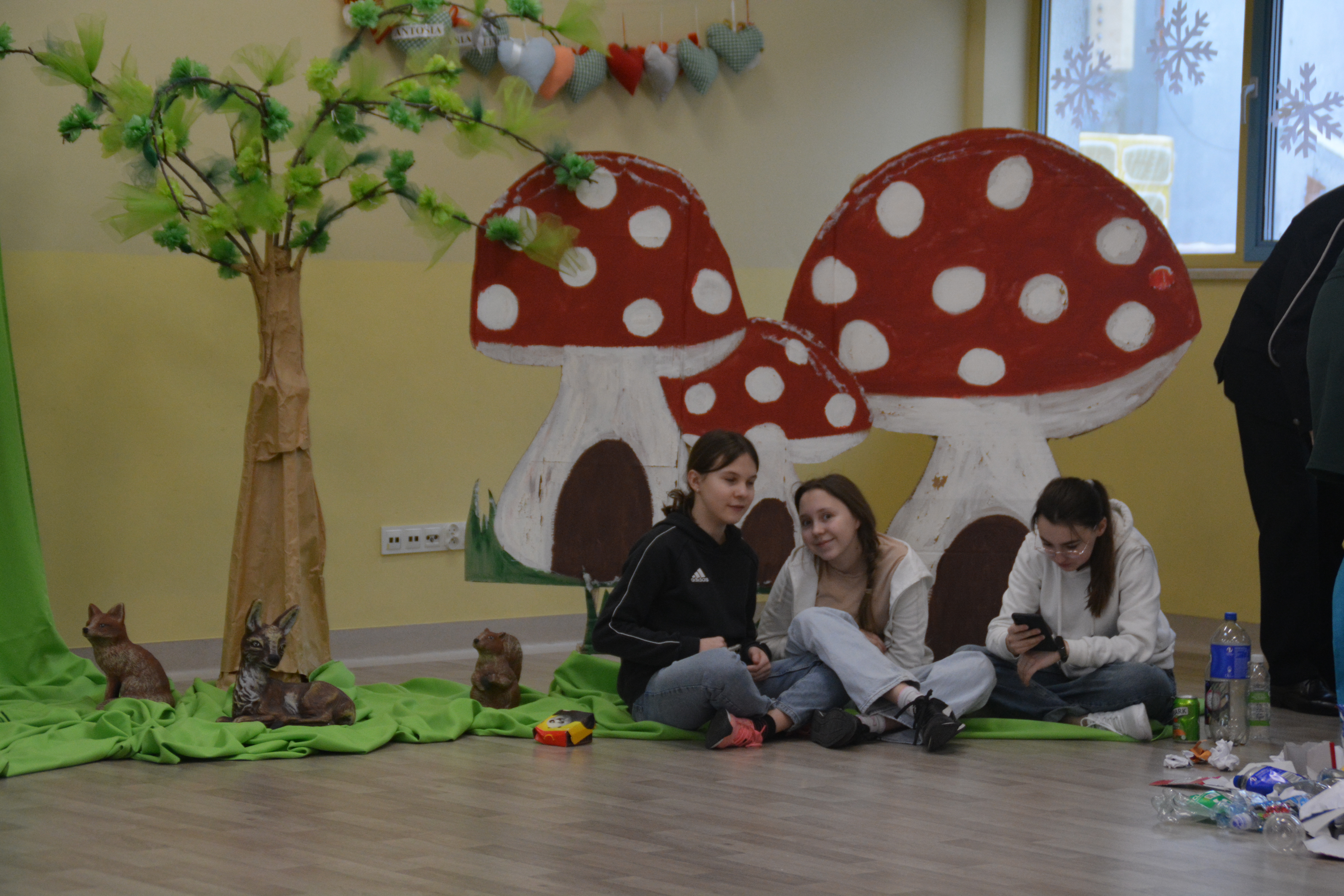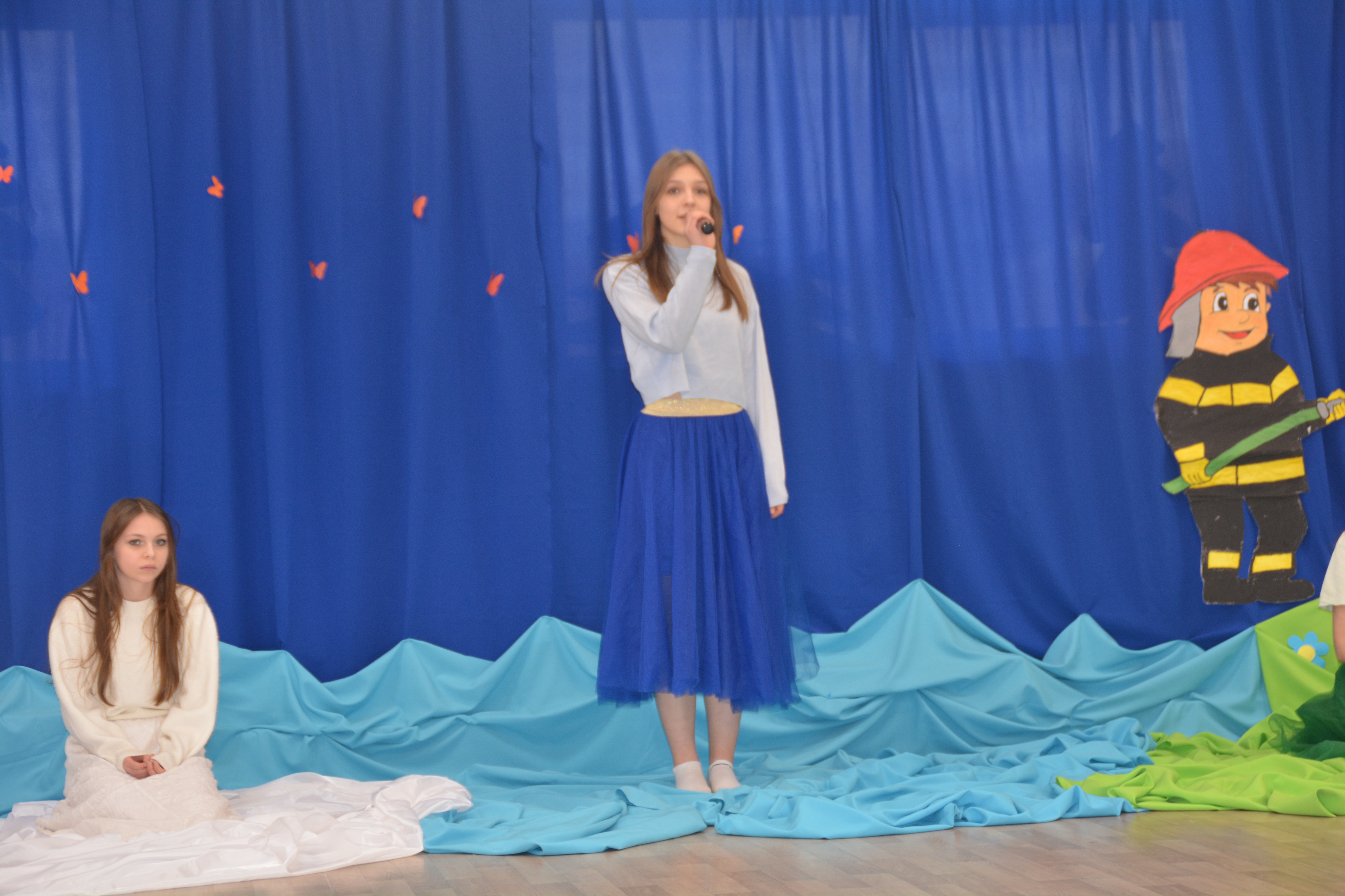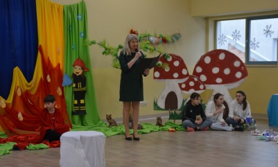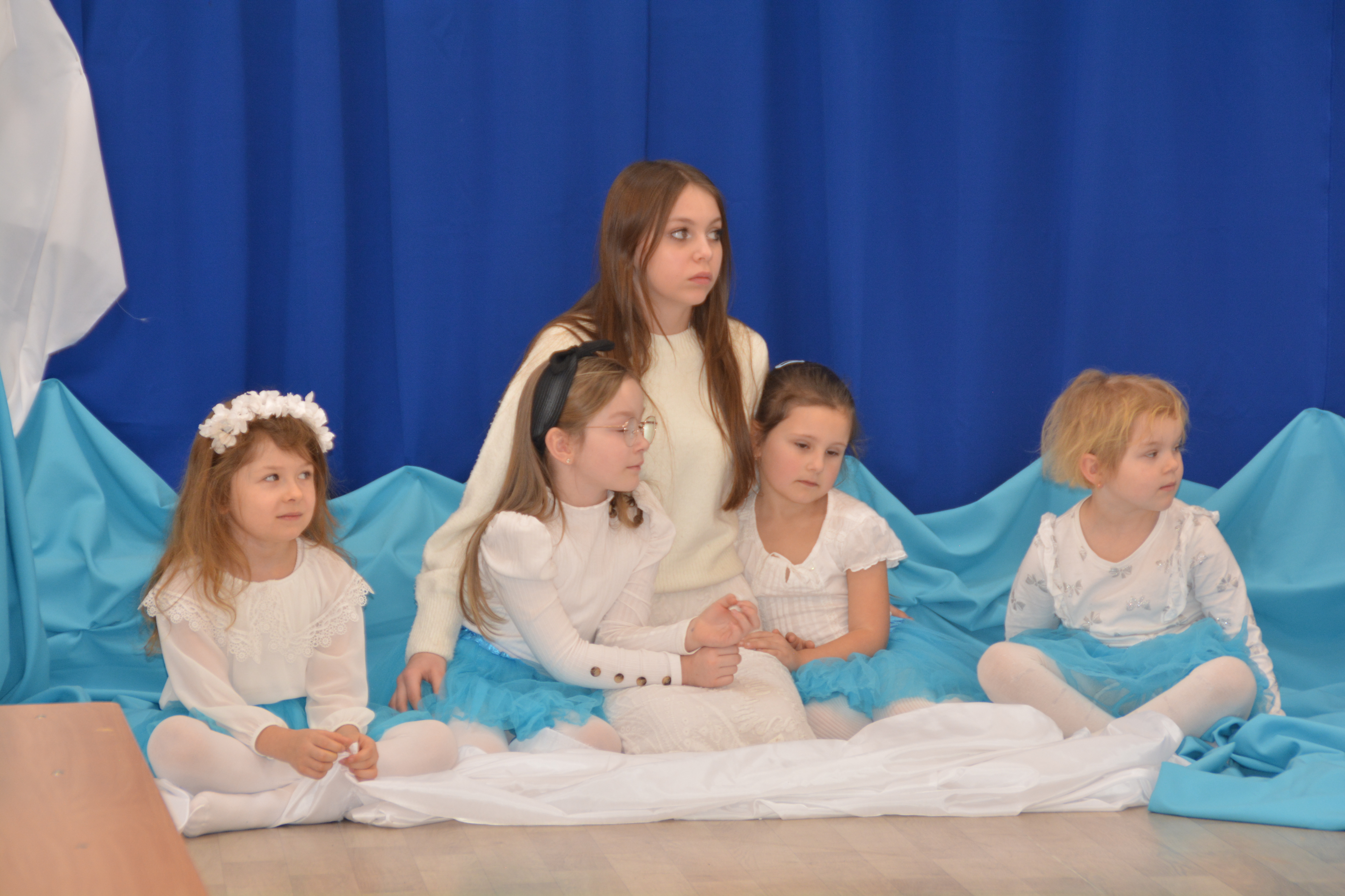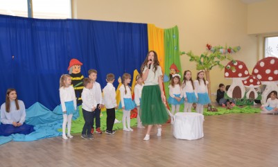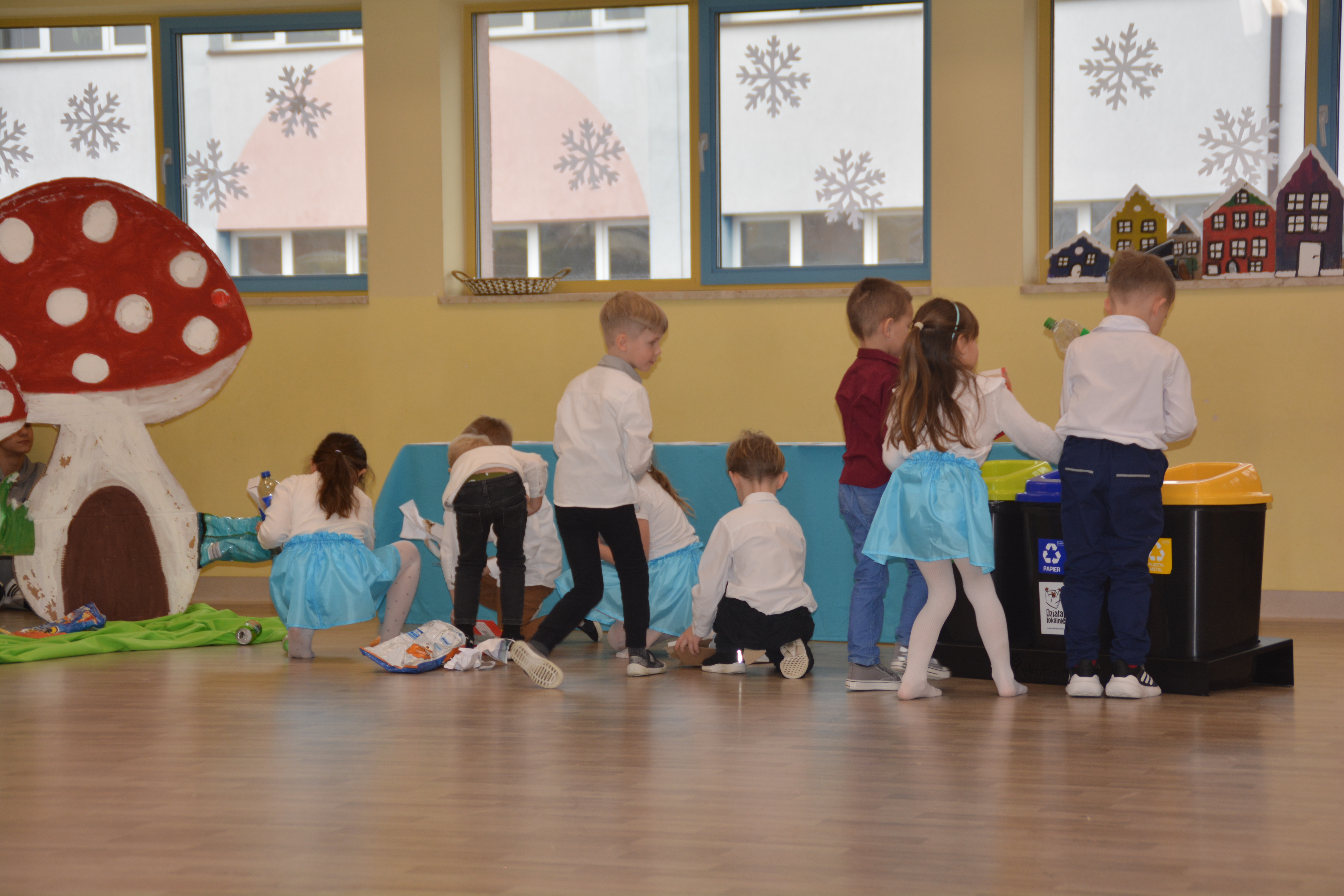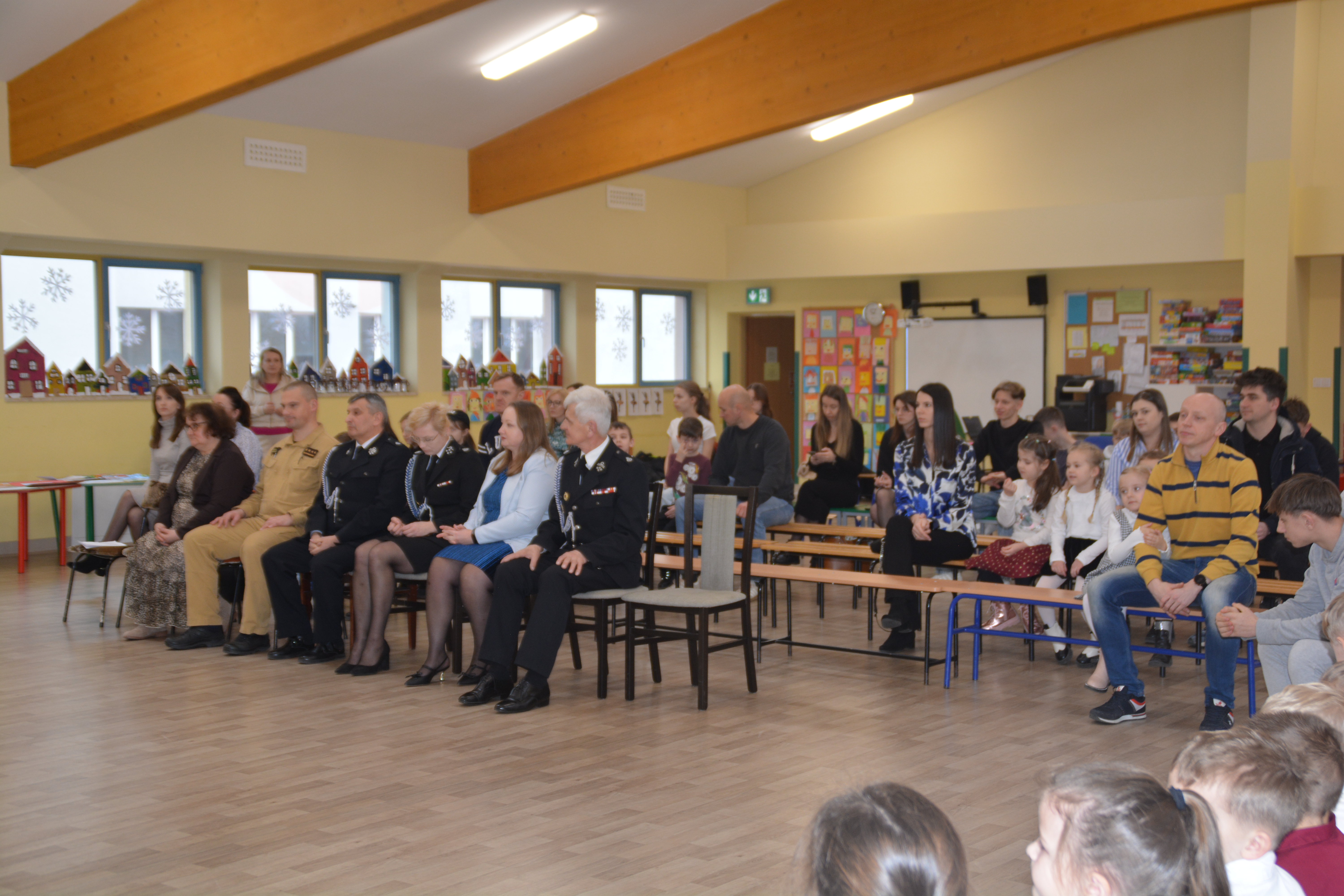 Uczestnicy spotkania obejrzeli przedstawienie „Opowieść o Ziemi”, przygotowane przez uczniów klasy VII i przedszkolaków.