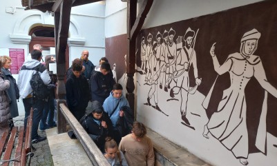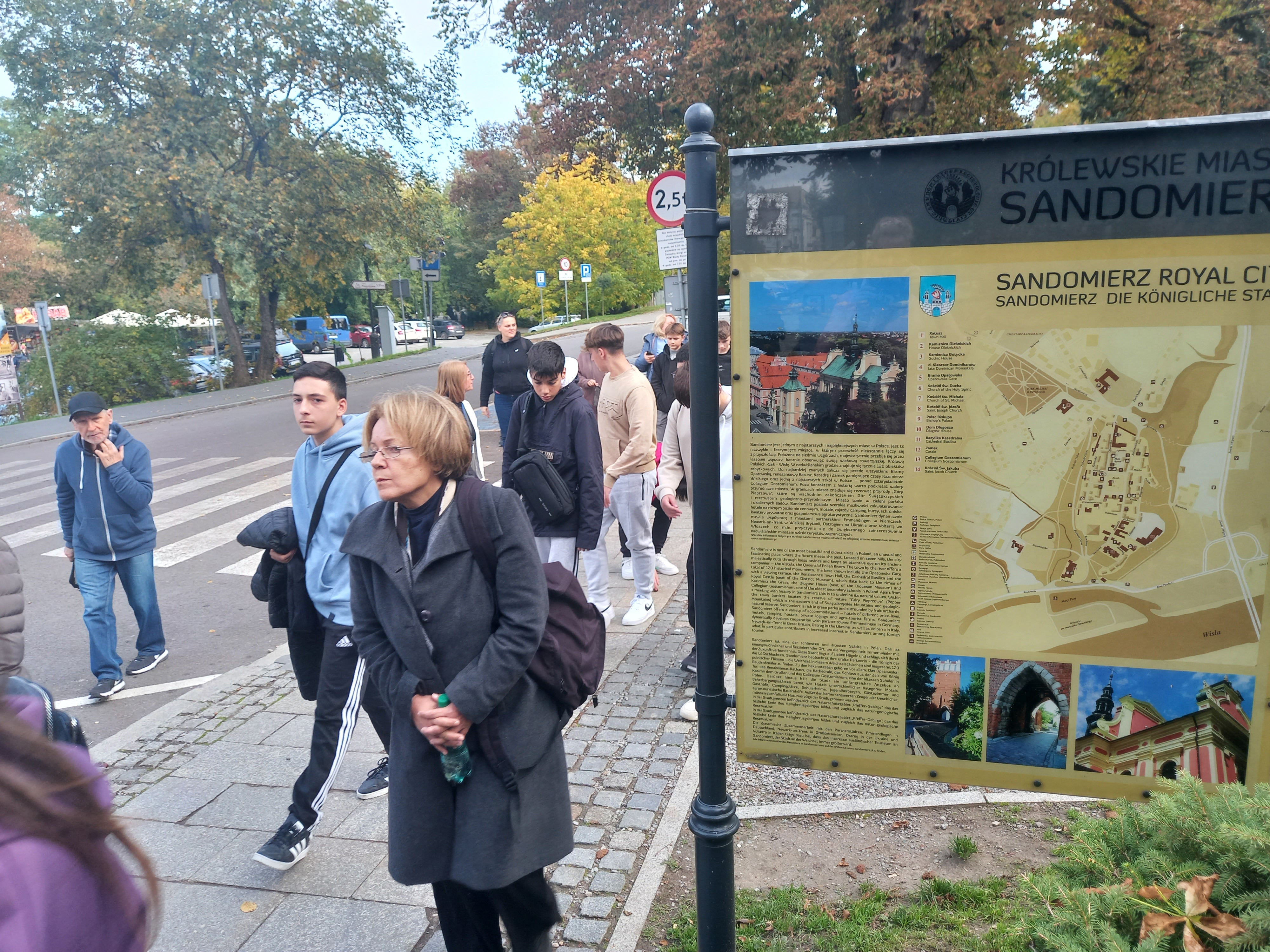 Po obiedzie wszyscy wzięliśmy udział w ciekawych i inspirujących doświadczeniach przedstawionych przez „Heweliuszy Nauki”, po czym pojechaliśmy w kierunku malowniczo położonego Sandomierza nad Wisłą. Renesansowy styl uroczych kamieniczek zachwycił naszych gości. Następnie, gdy zapadł zmrok, w świetle księżyca i płonących pochodni zdobyliśmy osławiony wieloma legendami zamek Krzyżtopór. Jego historię, zapisaną w wiekowych murach, opowiadała nam pani przewodnik. Nie obyło się bez nutki tajemniczości, bo co jakiś czas w oknach i korytarzach pojawiała się postać białej damy oraz Klucznika, który strzegł wytrwale największych tajemnic zamku.
