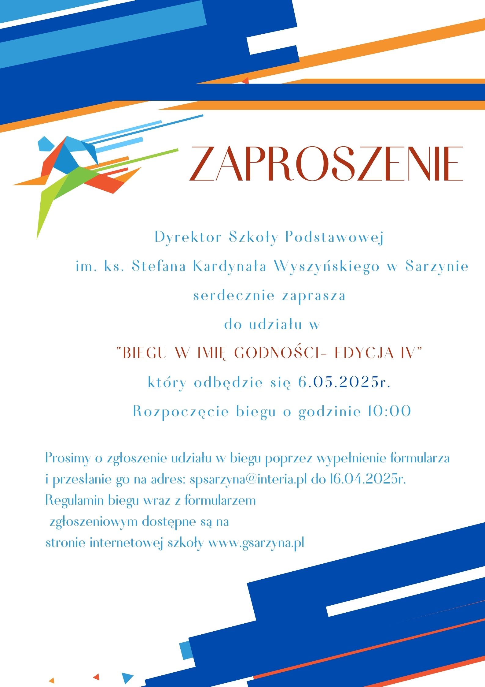 Formularz zgłoszeniowy udziału w „Gminnym Biegu w imię Godności - edycja IV”