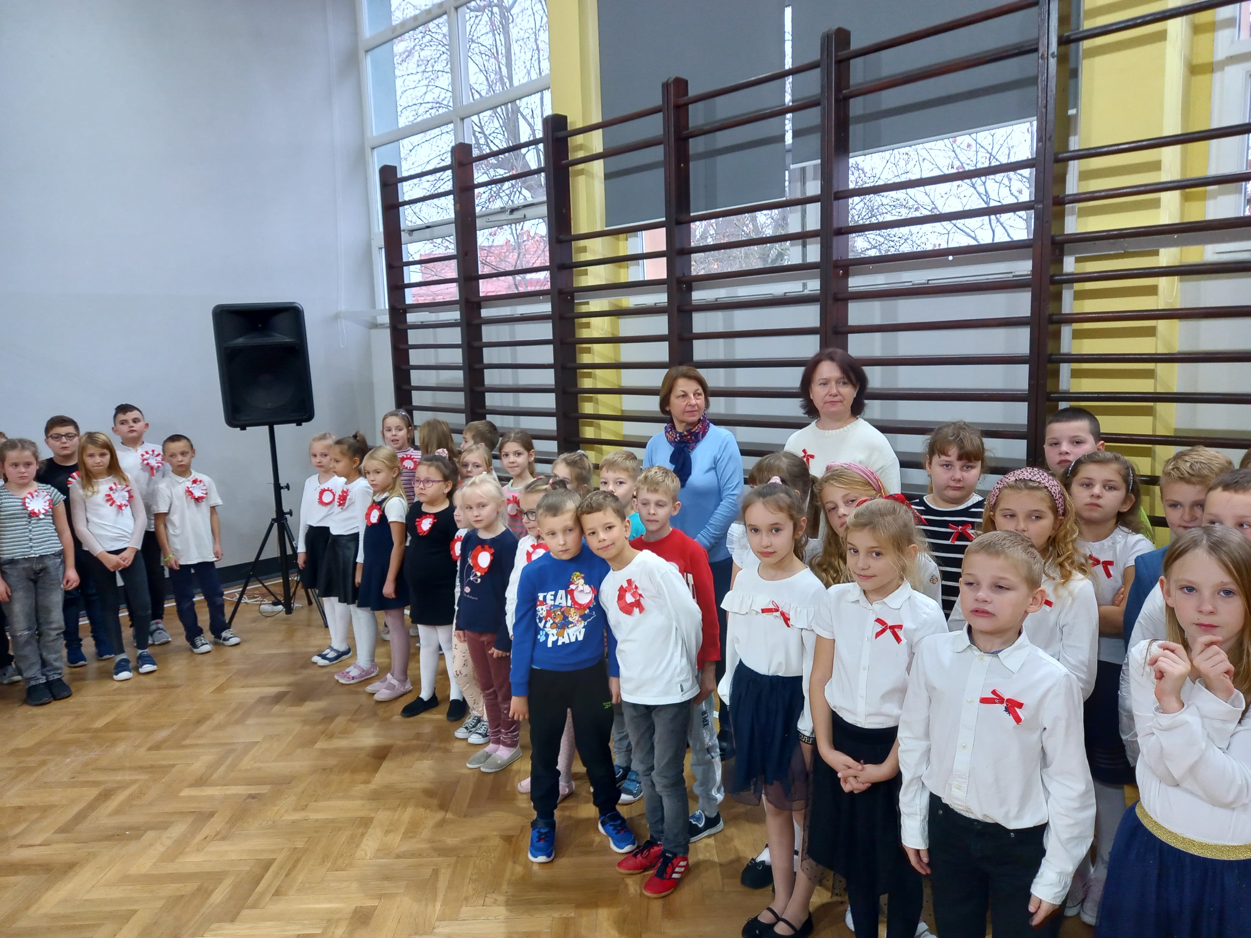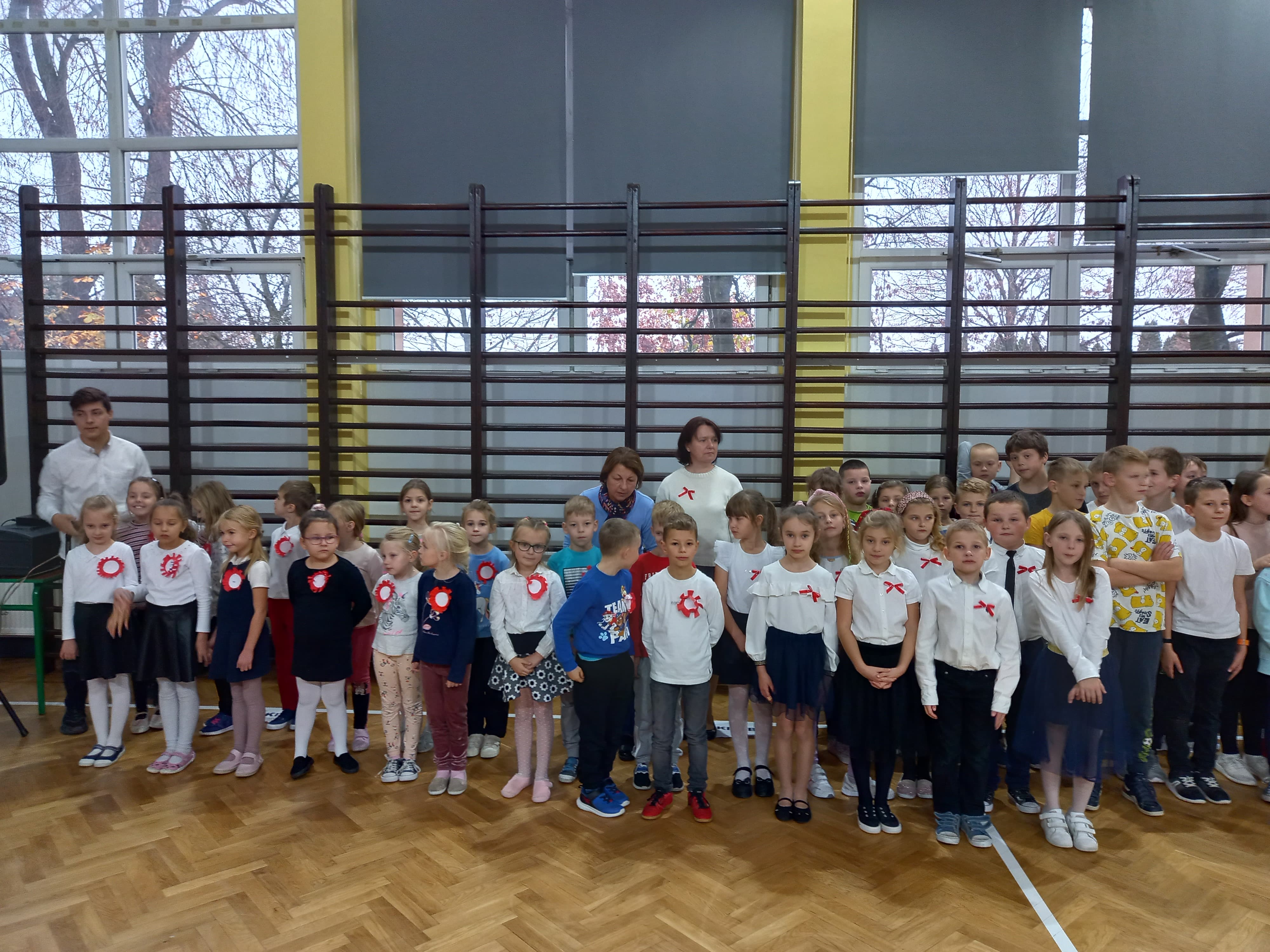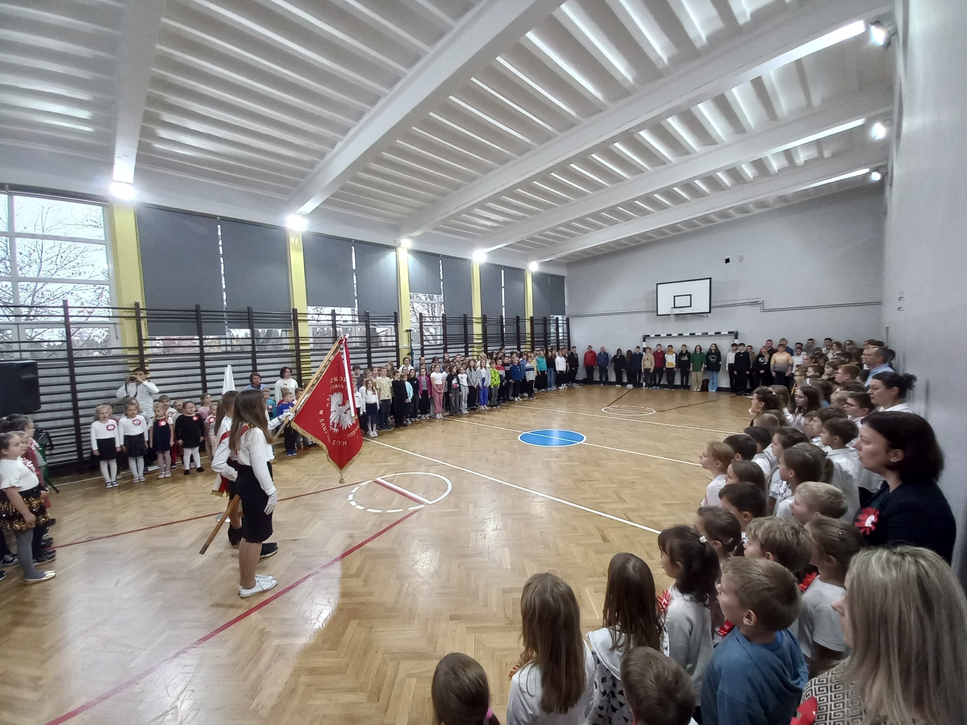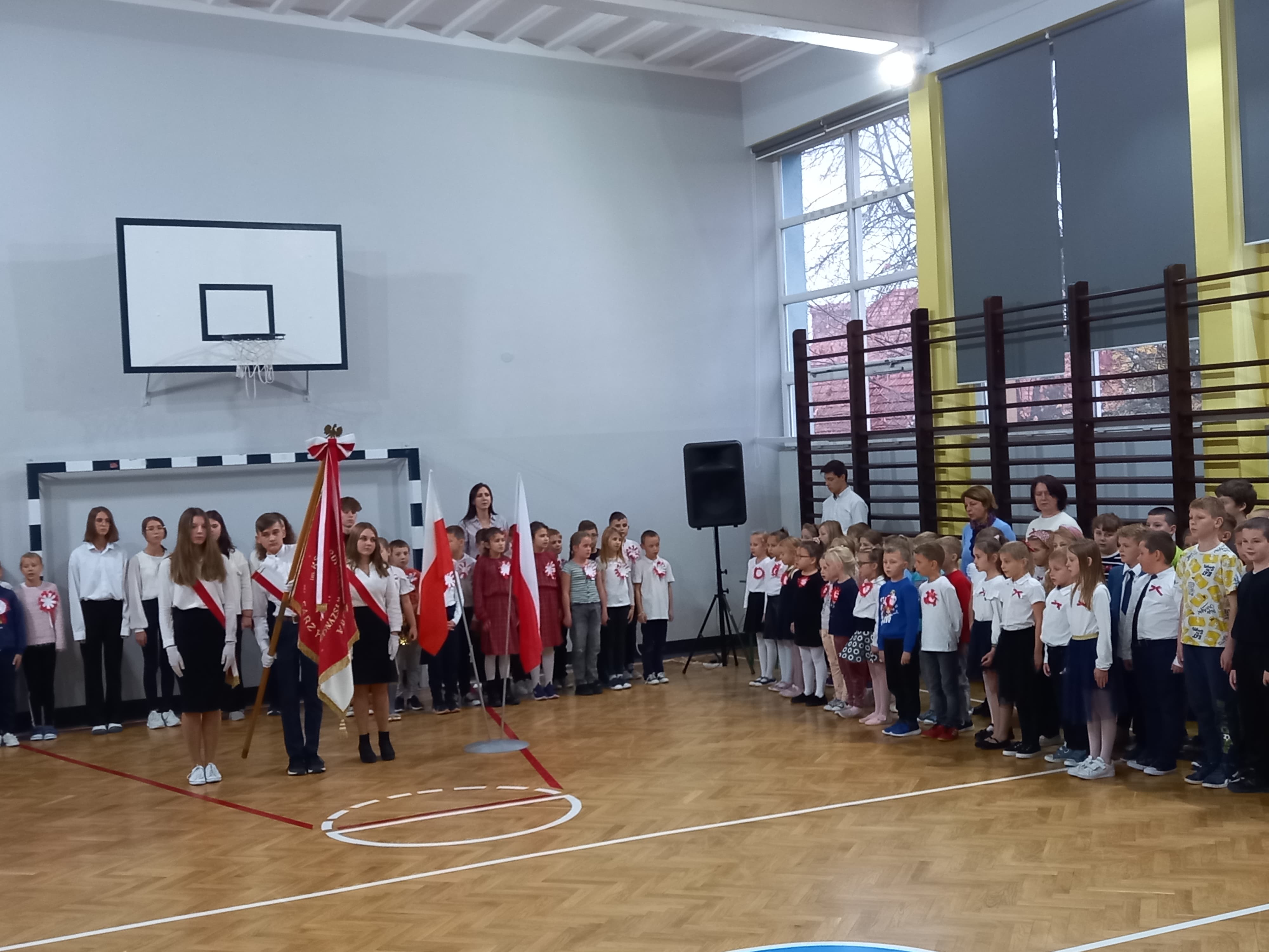Cała społeczność szkolna wspólnie o godzinie 11:11 uroczyście odśpiewała hymn narodowy, czym uczciła 104. rocznicę odzyskania przez Polskę niepodległości.