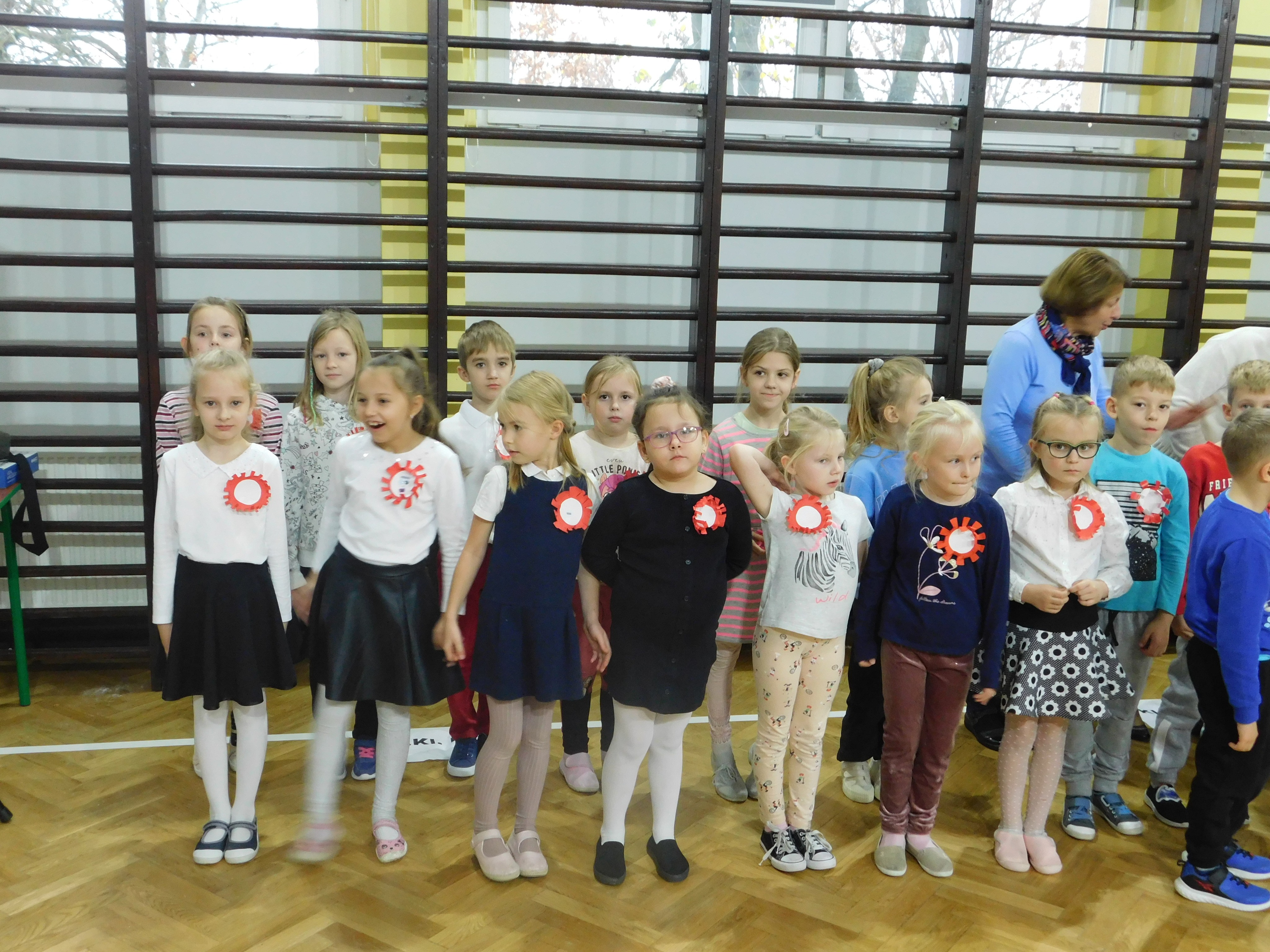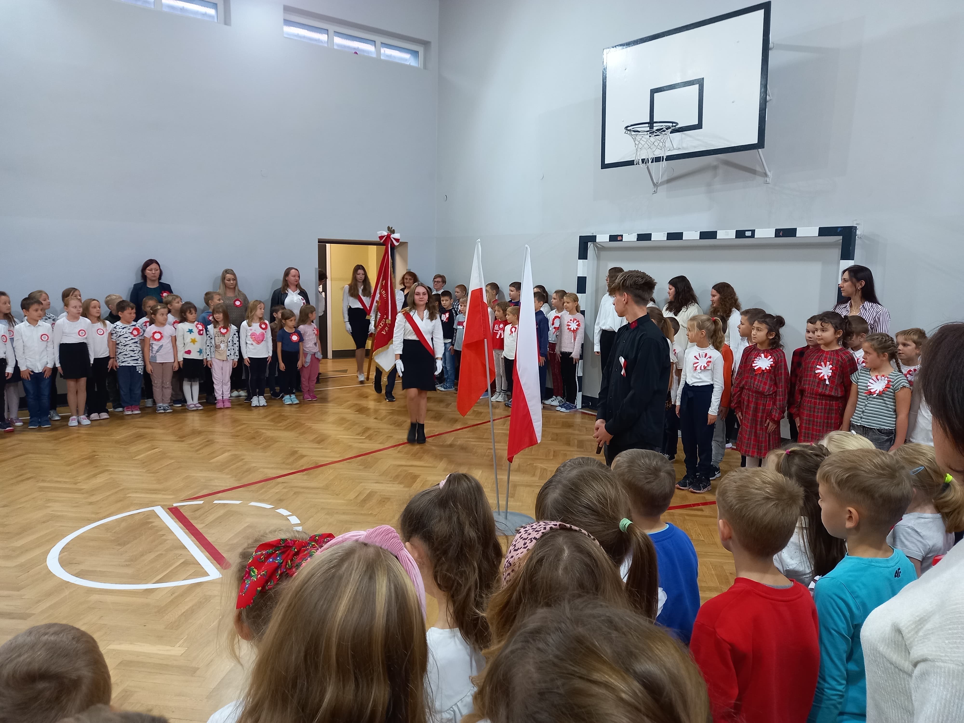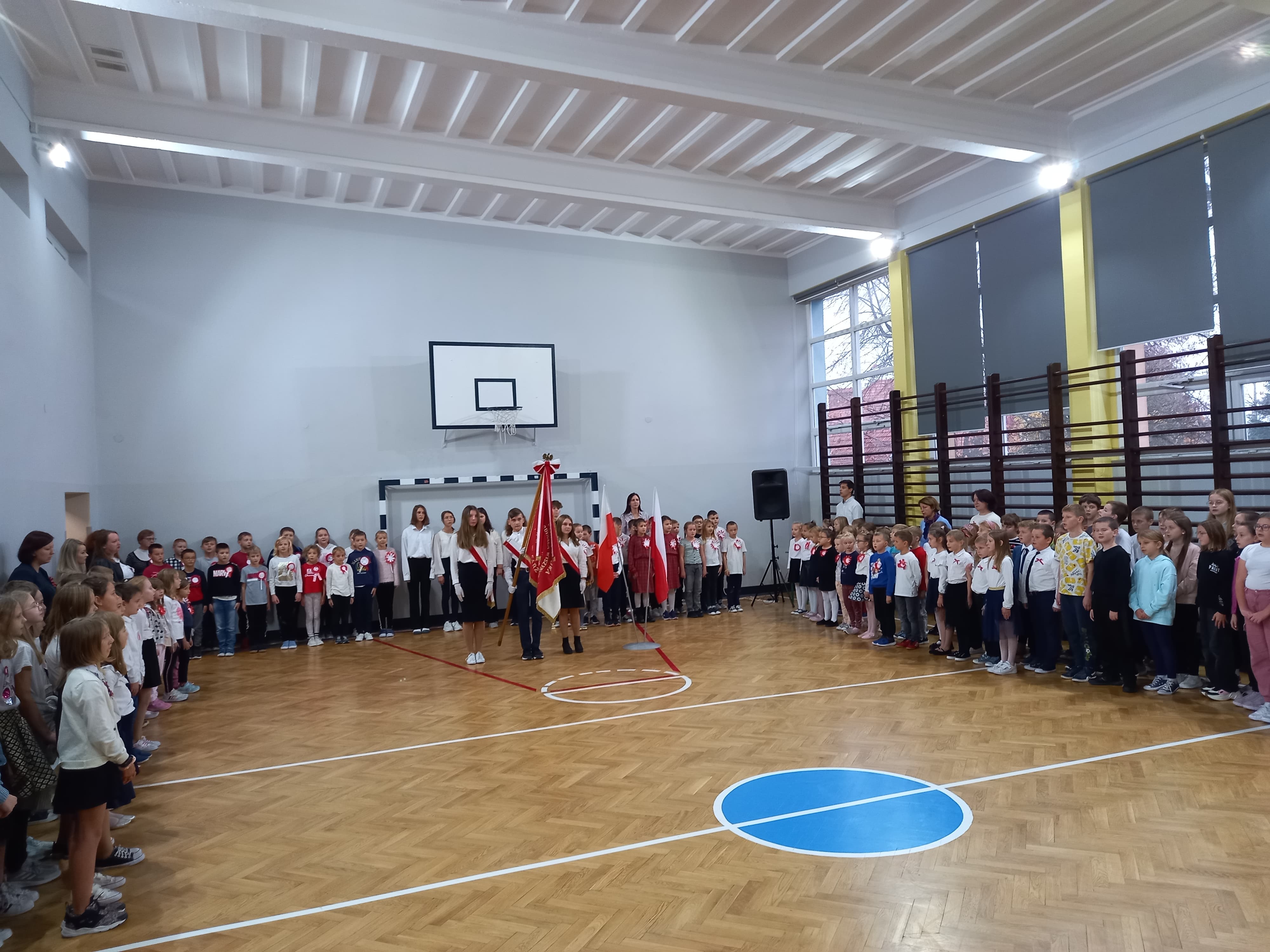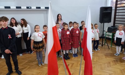 Cała społeczność szkolna wspólnie o godzinie 11:11 uroczyście odśpiewała hymn narodowy, czym uczciła 104. rocznicę odzyskania przez Polskę niepodległości.
