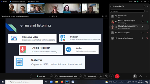 Kontynuujemy nasze oficjalne spotkania z koleżankami z Grecji. Tym razem Kiki i Demertzi zaprosiły nas na Webex, aby podzielić się swoimi doświadczeniami w zakresie zdalnego nauczania słuchania, gramatyki oraz mówienia.