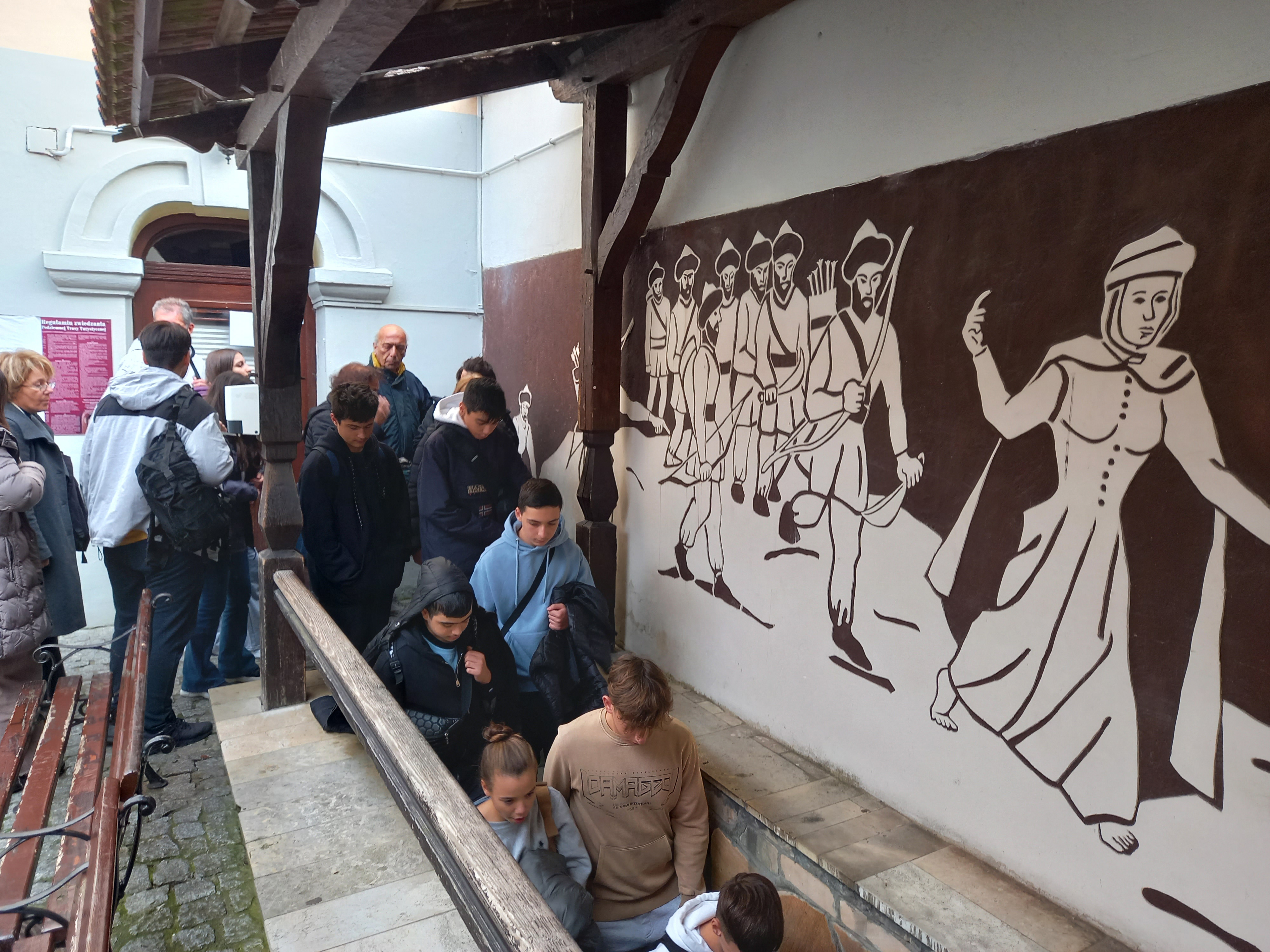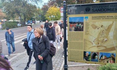 Po obiedzie wszyscy wzięliśmy udział w ciekawych i inspirujących doświadczeniach przedstawionych przez „Heweliuszy Nauki”, po czym pojechaliśmy w kierunku malowniczo położonego Sandomierza nad Wisłą. Renesansowy styl uroczych kamieniczek zachwycił naszych gości. Następnie, gdy zapadł zmrok, w świetle księżyca i płonących pochodni zdobyliśmy osławiony wieloma legendami zamek Krzyżtopór. Jego historię, zapisaną w wiekowych murach, opowiadała nam pani przewodnik. Nie obyło się bez nutki tajemniczości, bo co jakiś czas w oknach i korytarzach pojawiała się postać białej damy oraz Klucznika, który strzegł wytrwale największych tajemnic zamku.