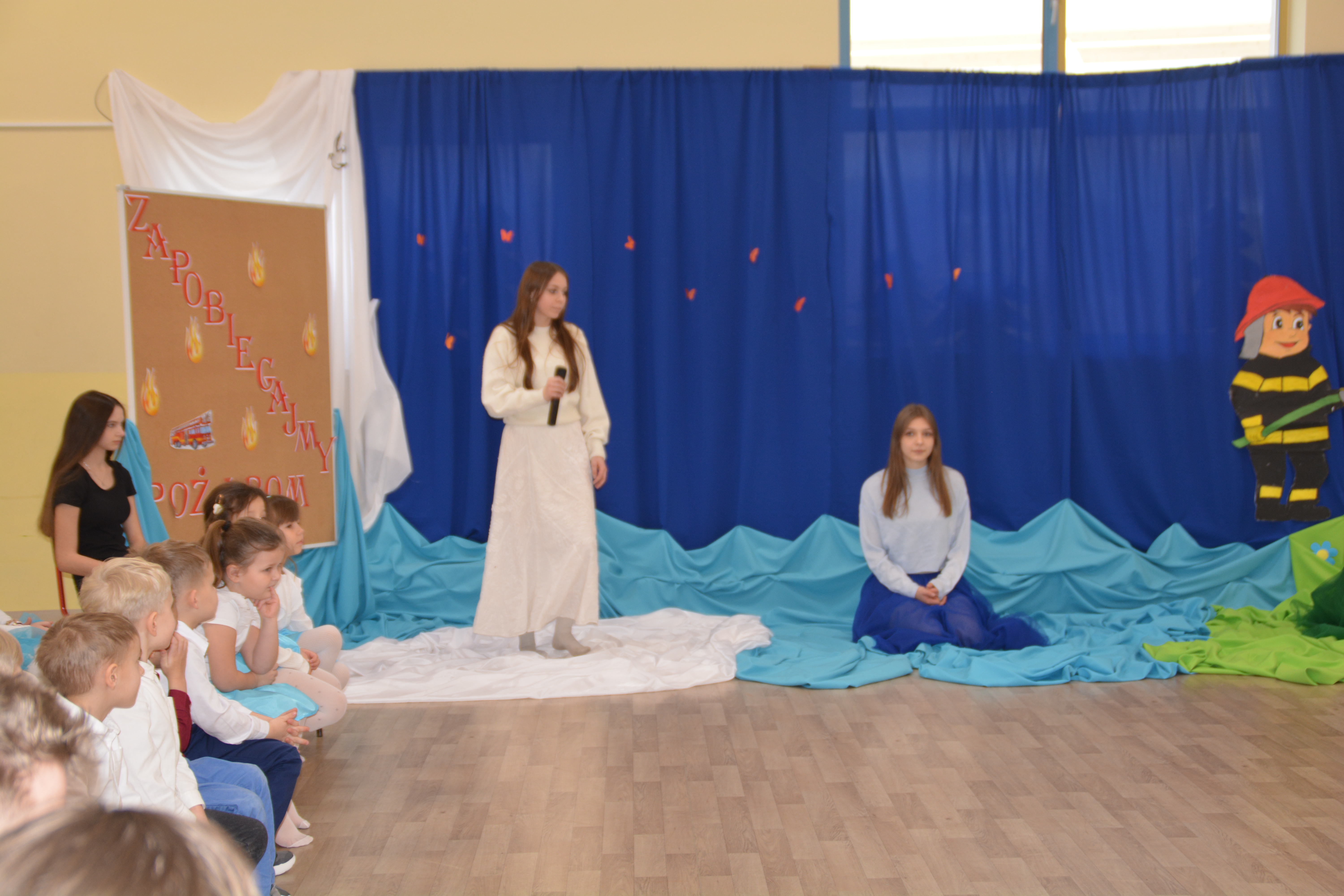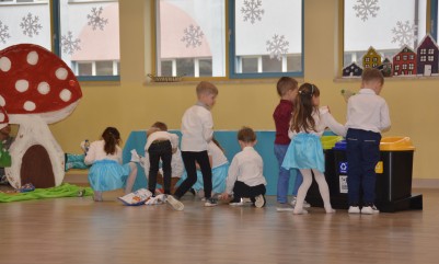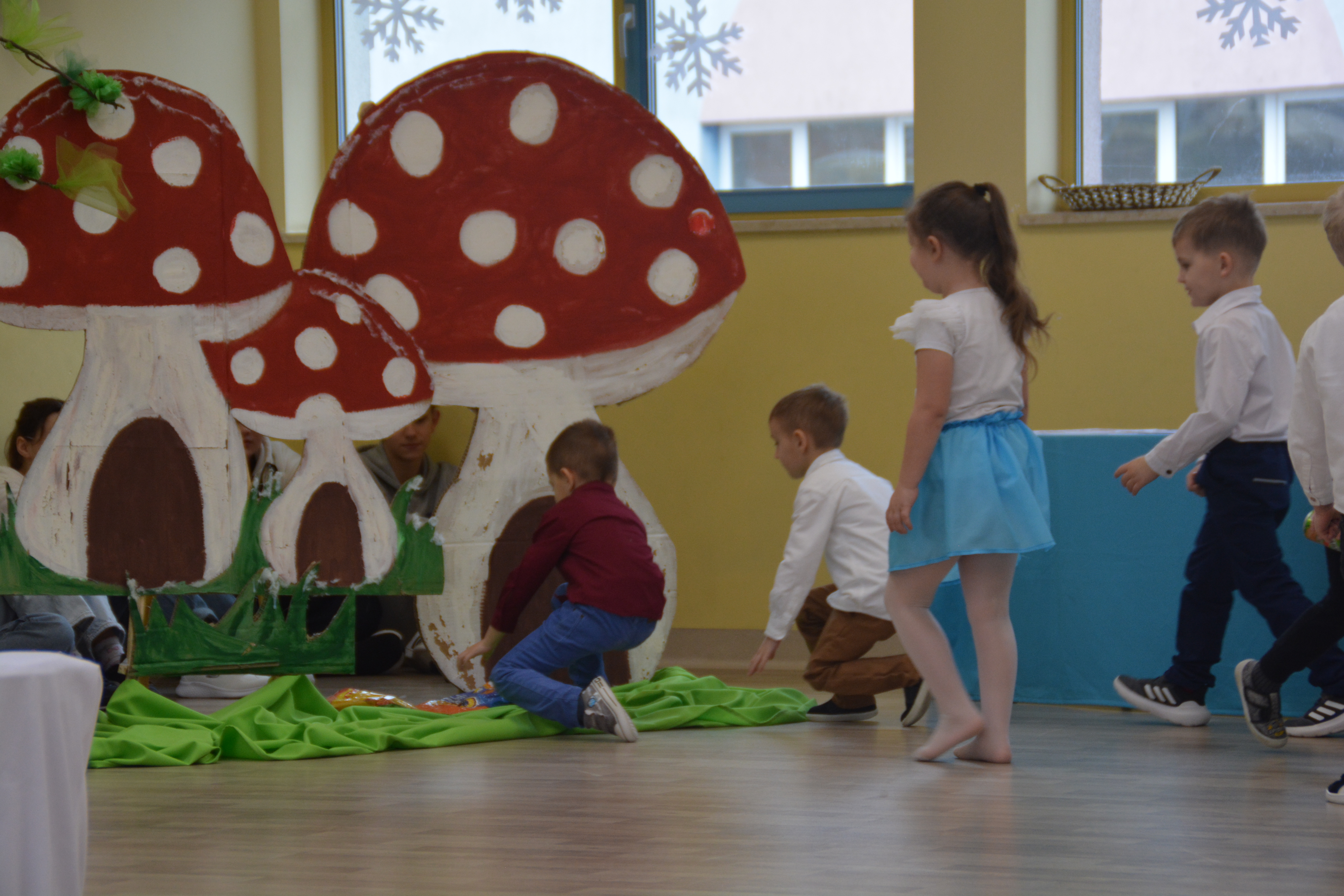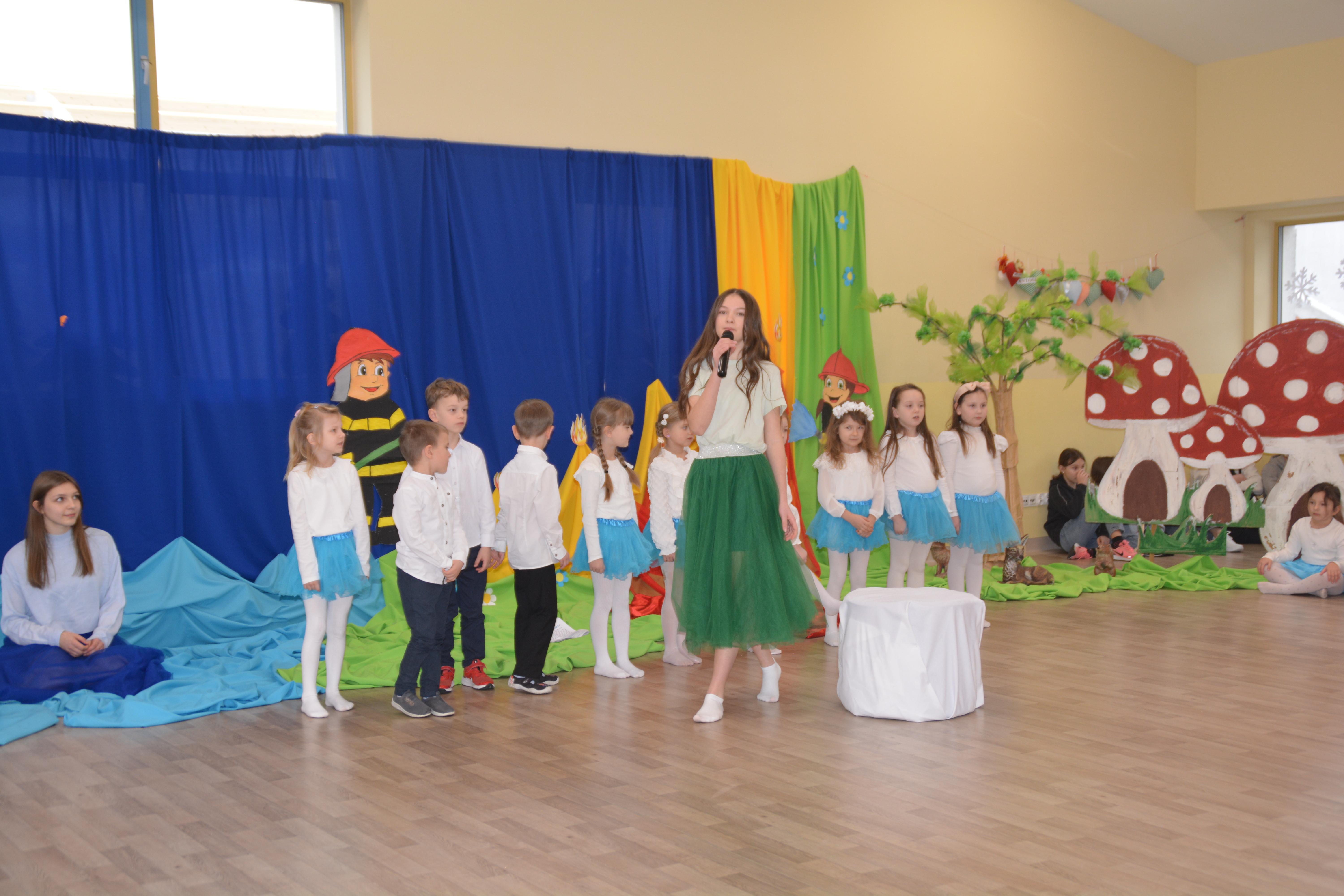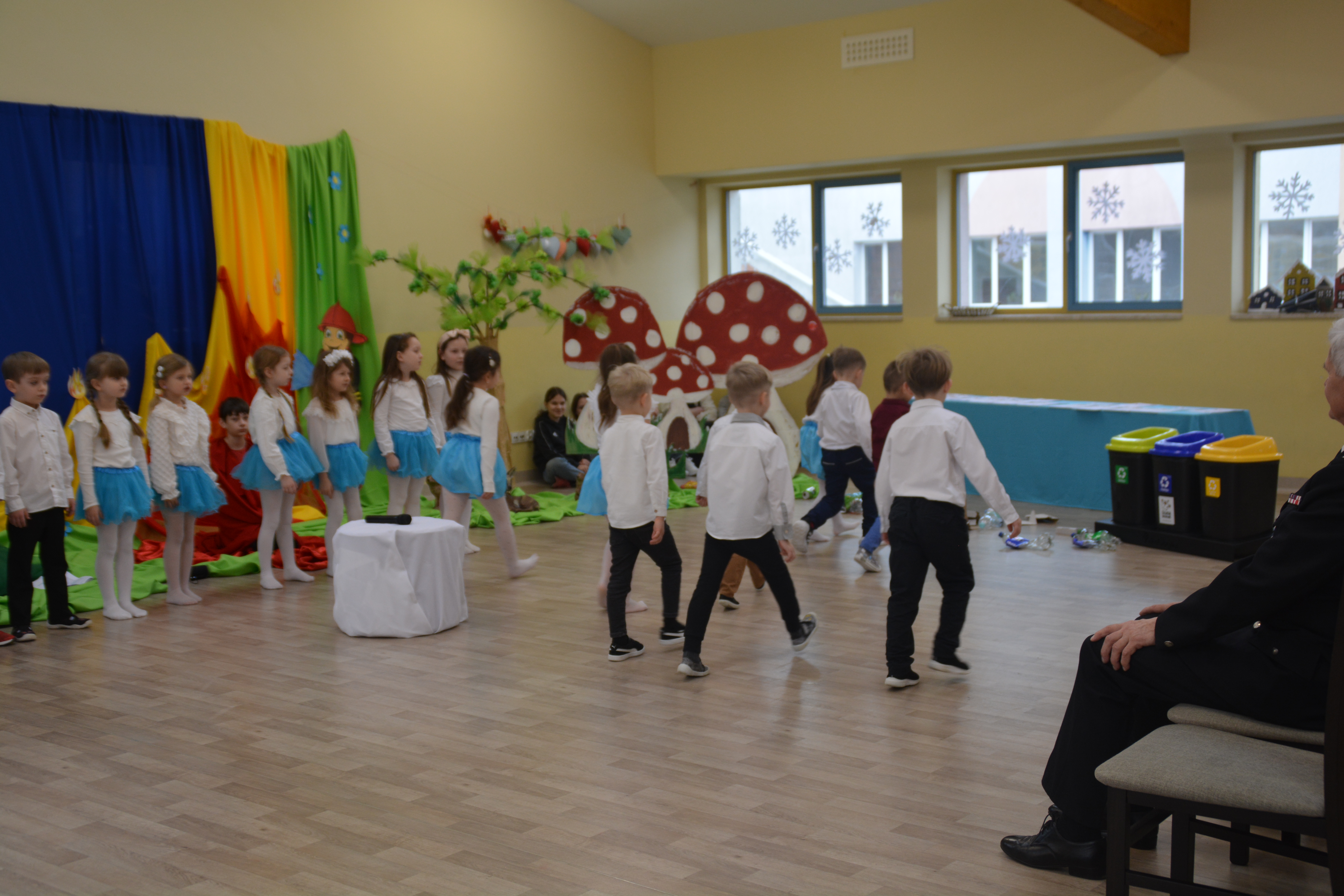Uczestnicy spotkania obejrzeli przedstawienie „Opowieść o Ziemi”, przygotowane przez uczniów klasy VII i przedszkolaków.