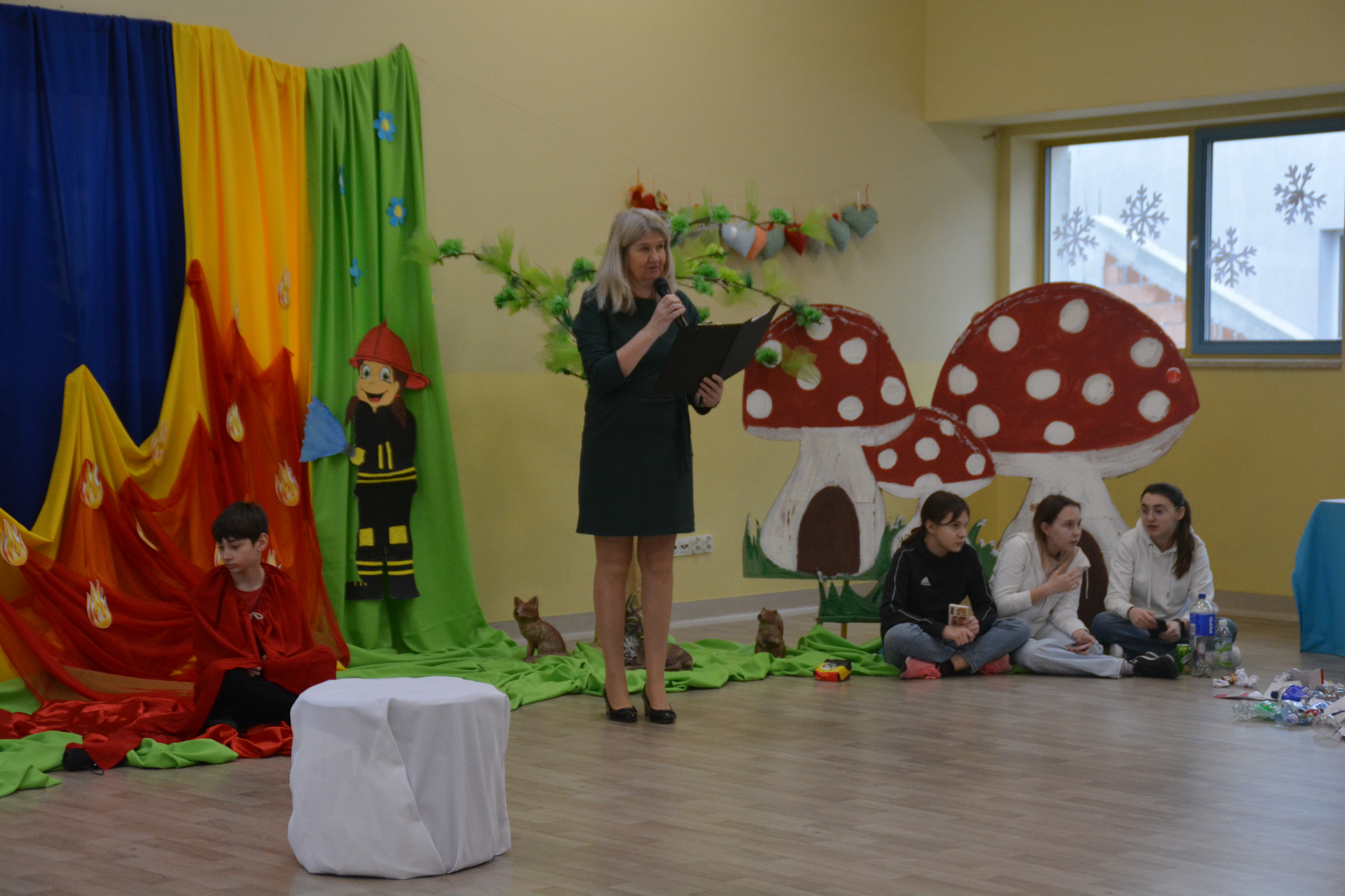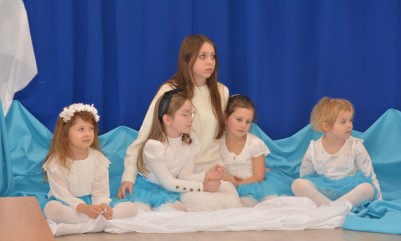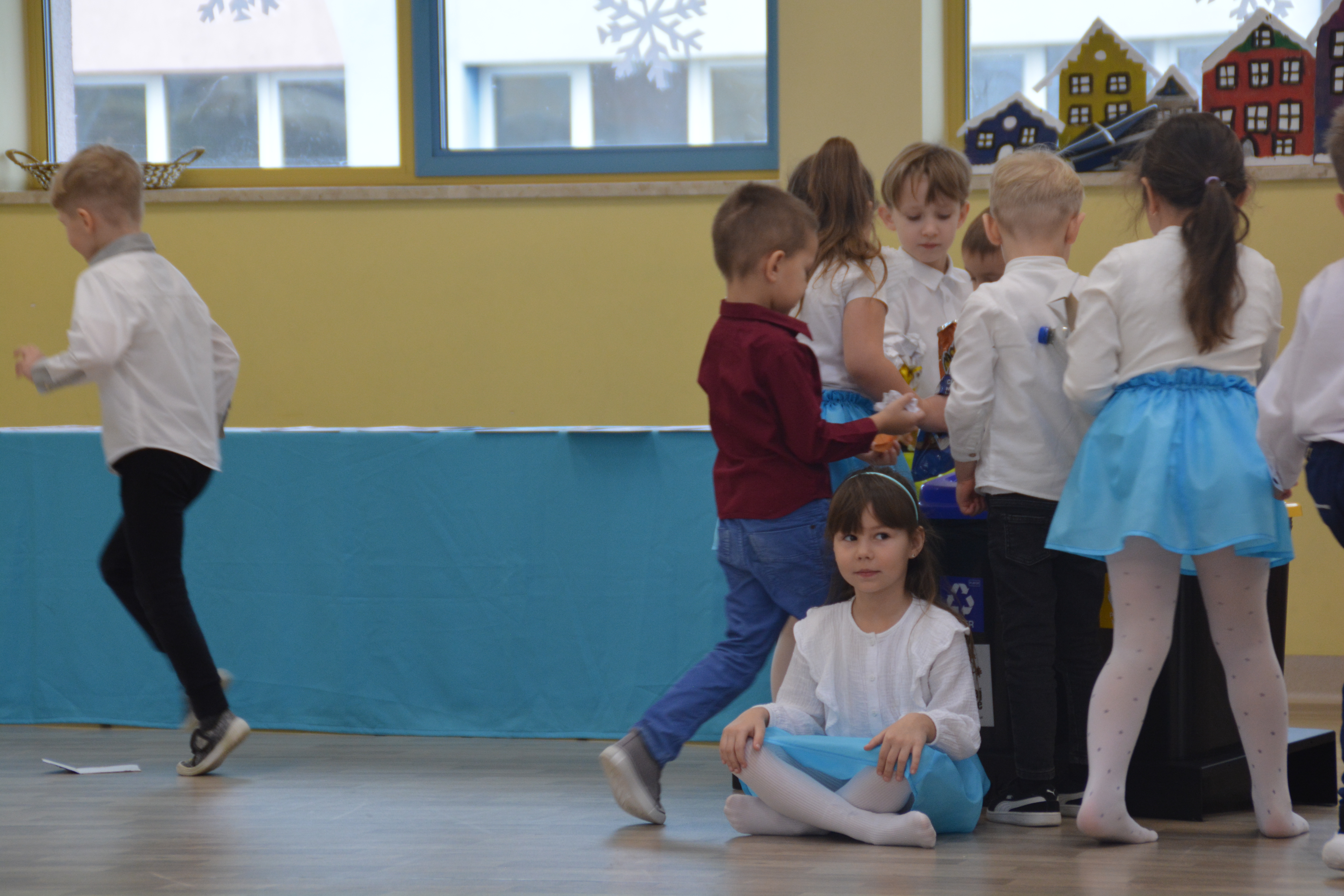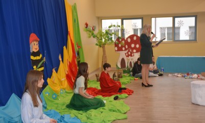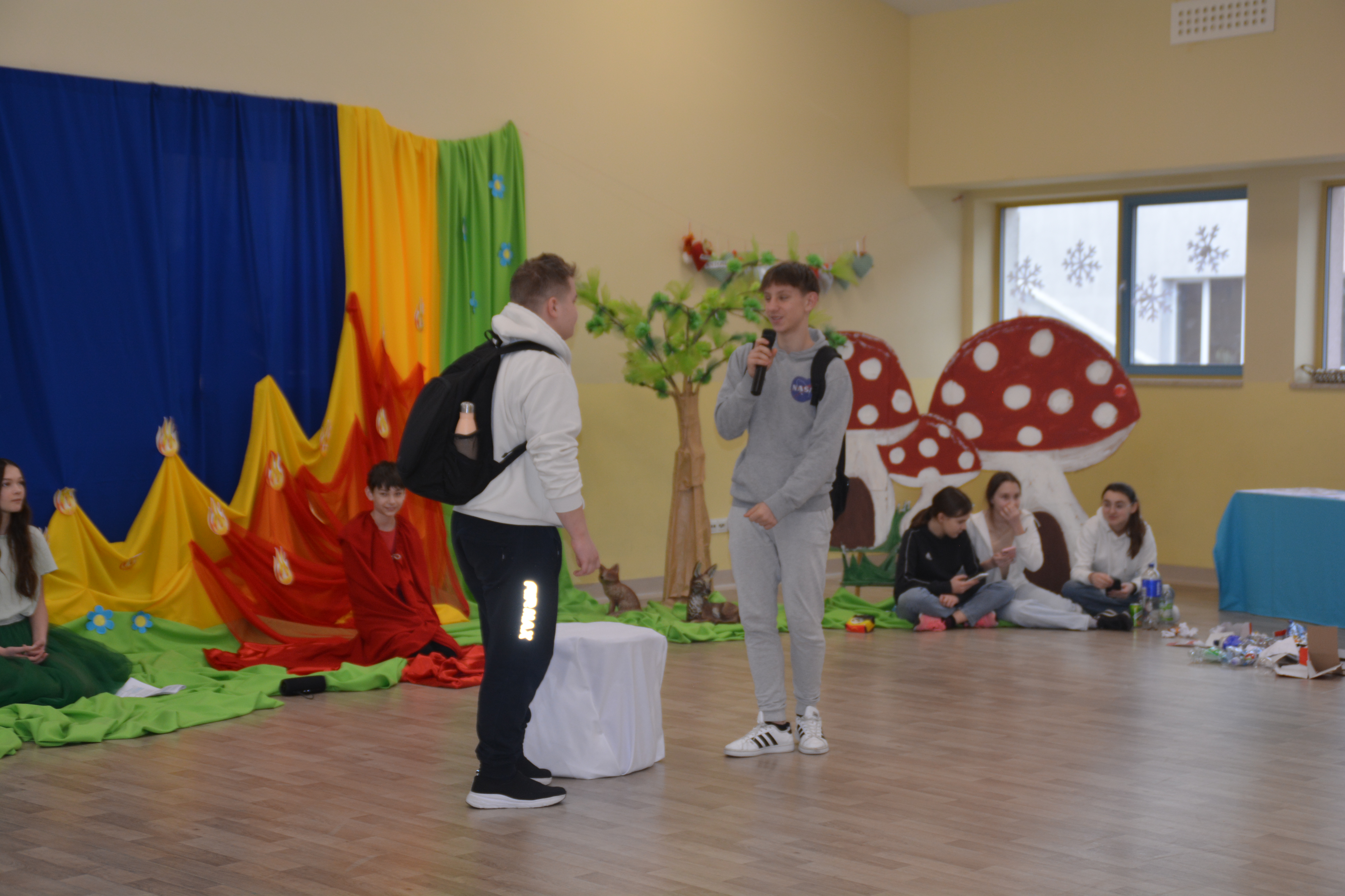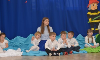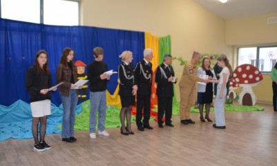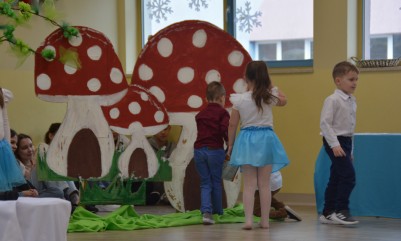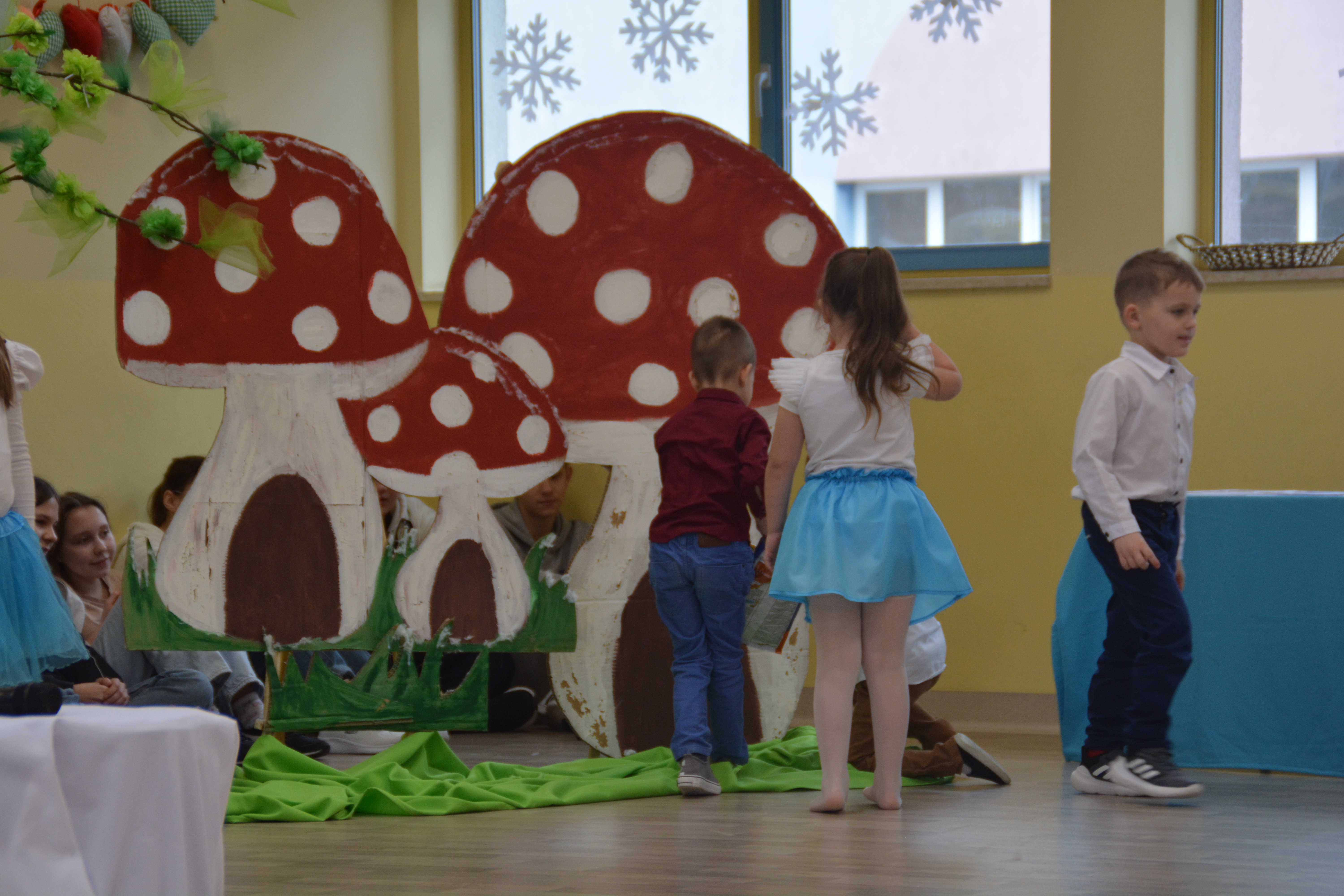 Uczestnicy spotkania obejrzeli przedstawienie „Opowieść o Ziemi”, przygotowane przez uczniów klasy VII i przedszkolaków.