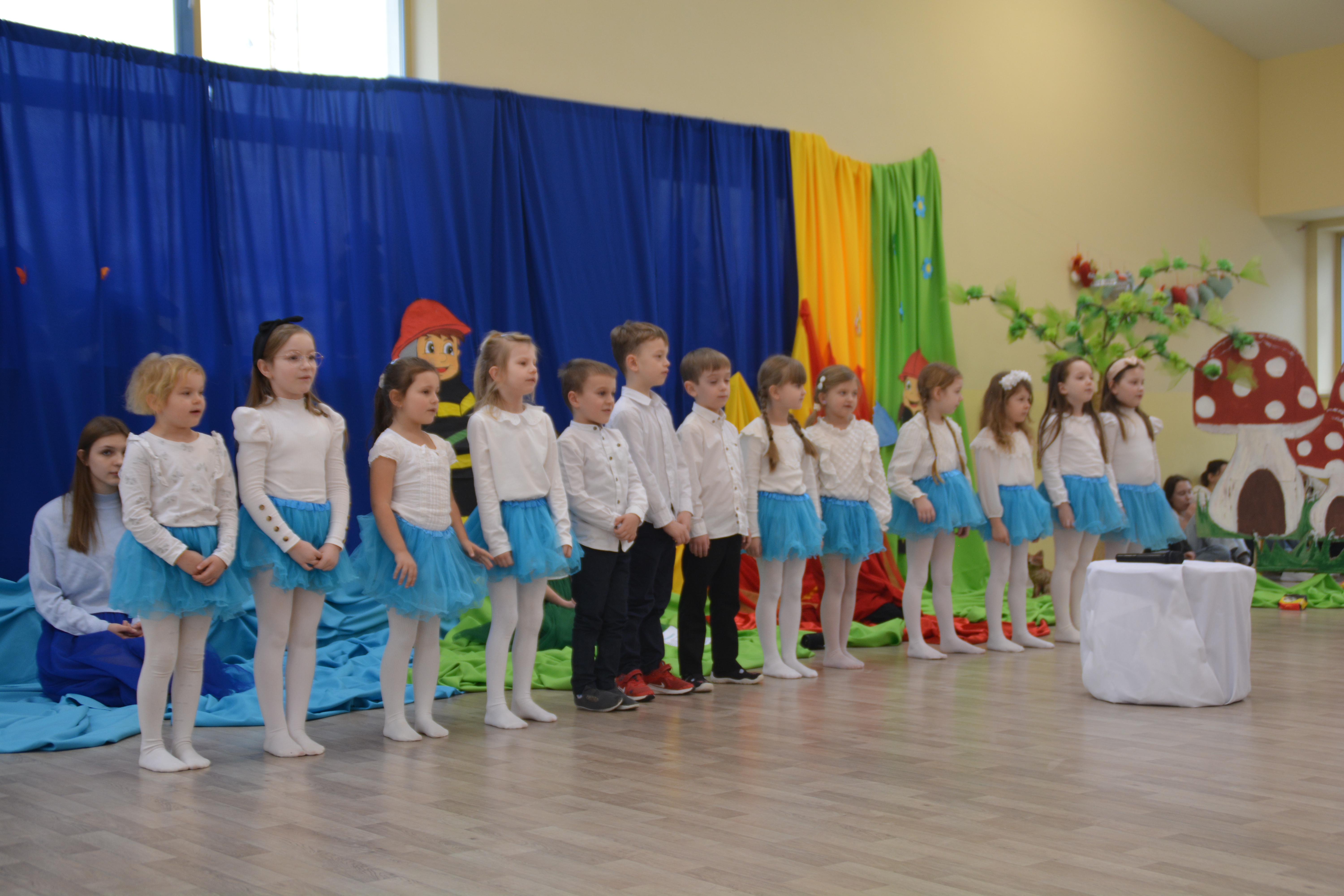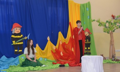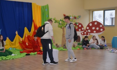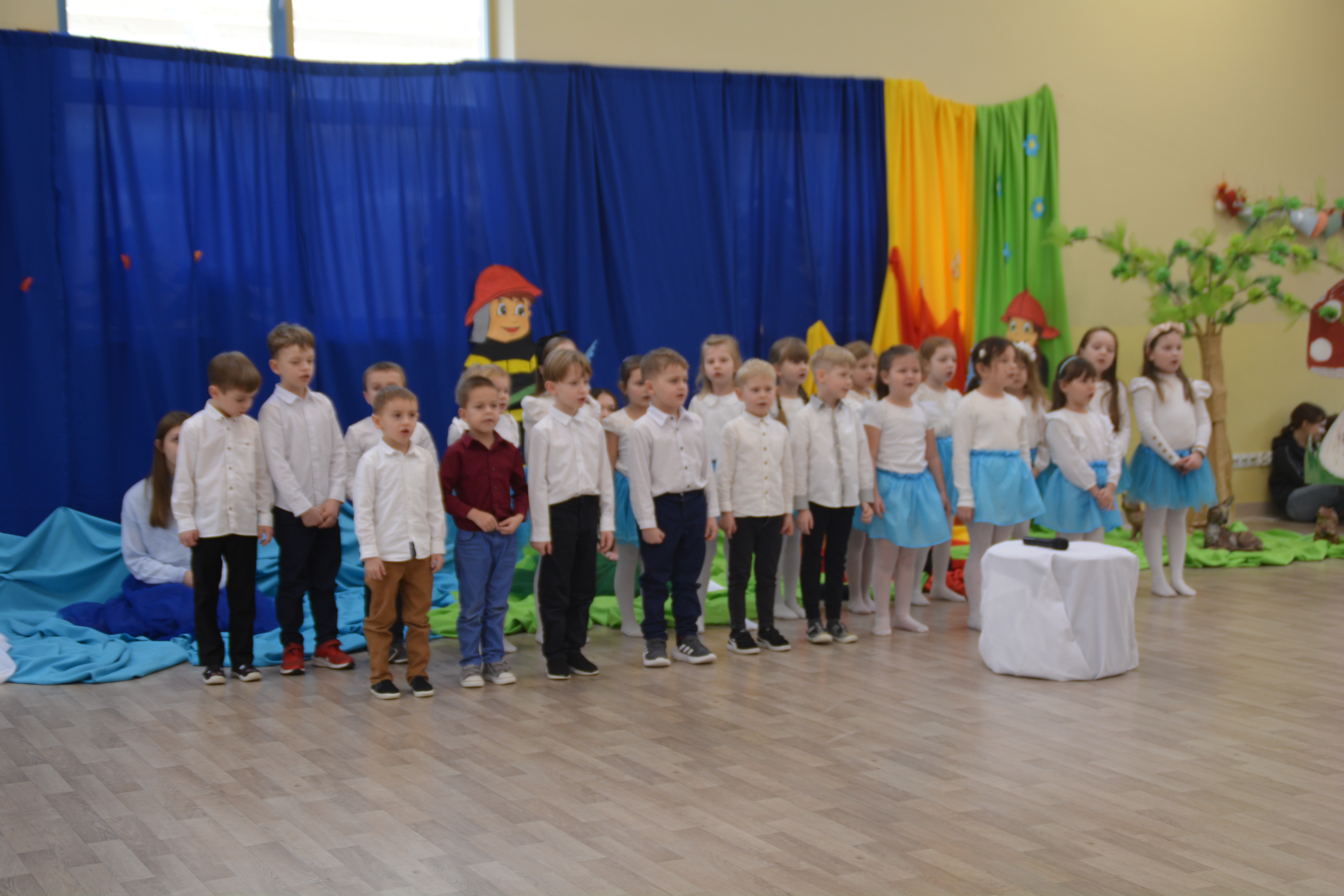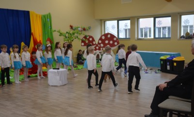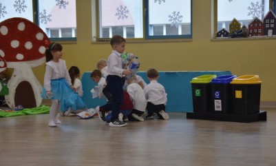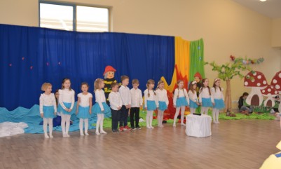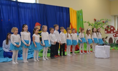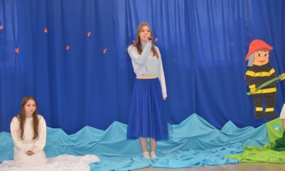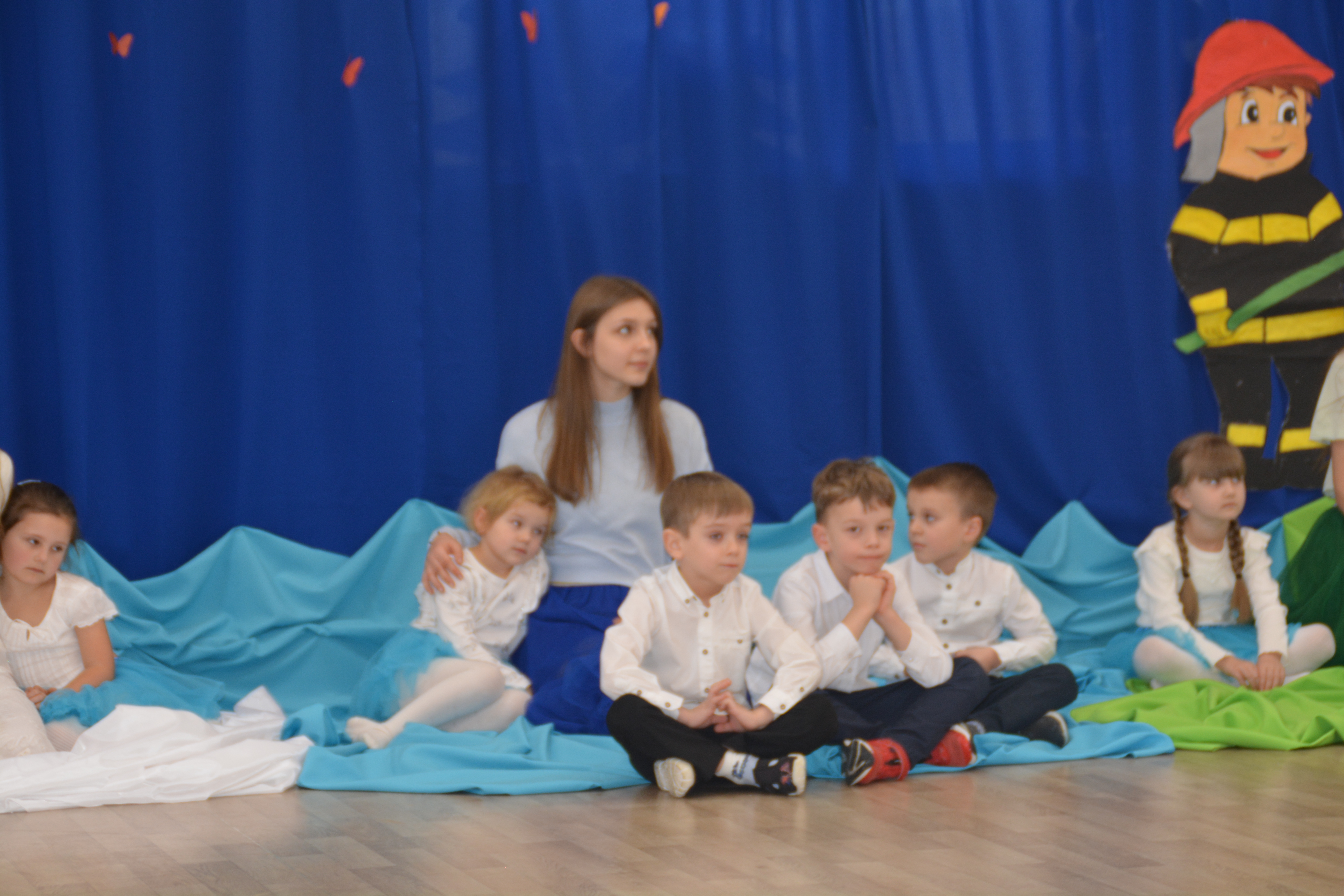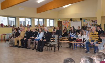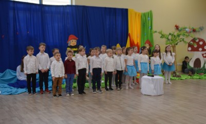 Uczestnicy spotkania obejrzeli przedstawienie „Opowieść o Ziemi”, przygotowane przez uczniów klasy VII i przedszkolaków.