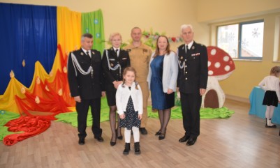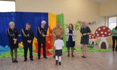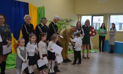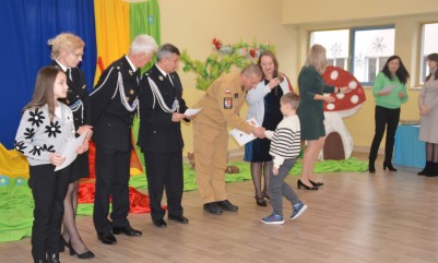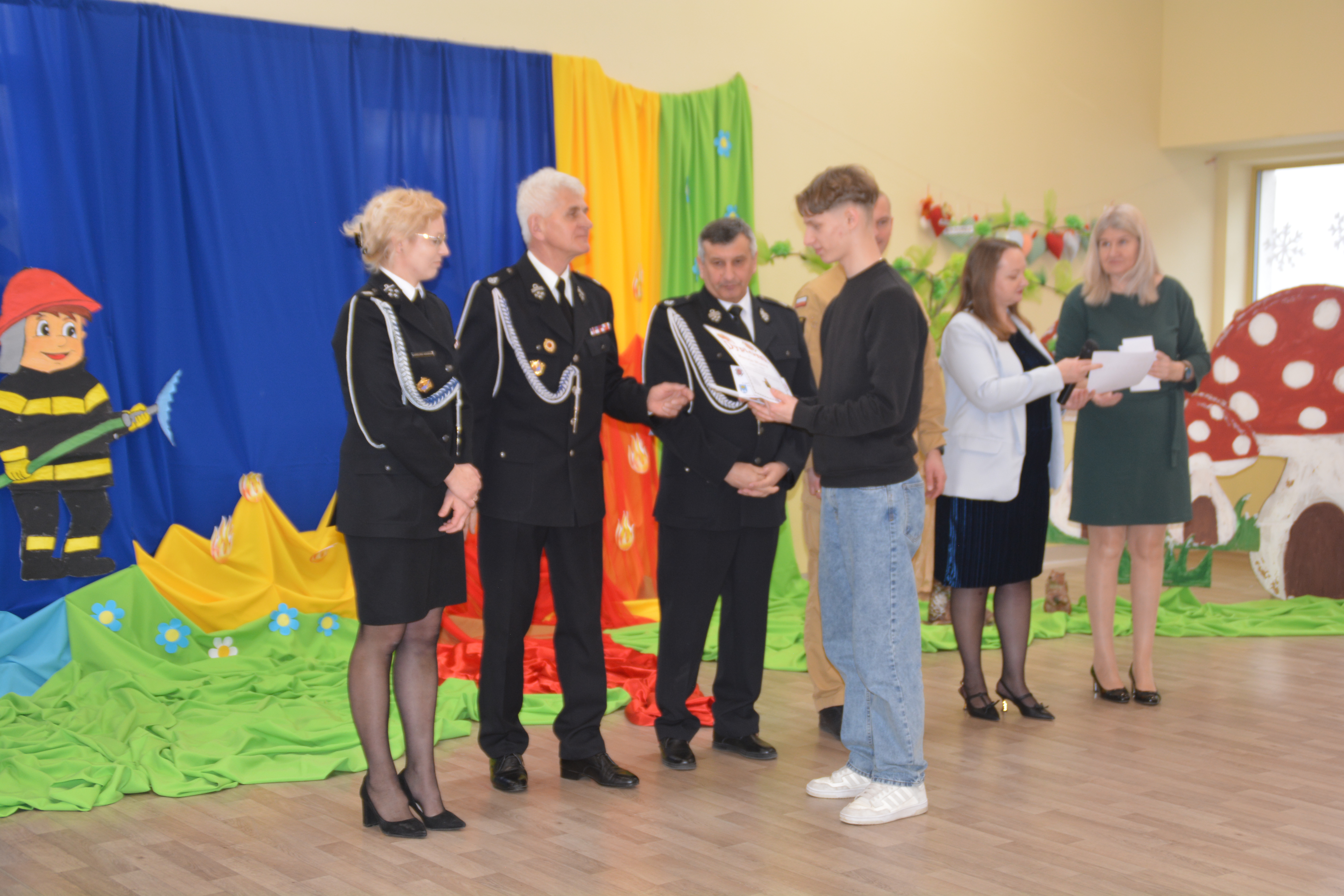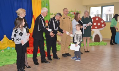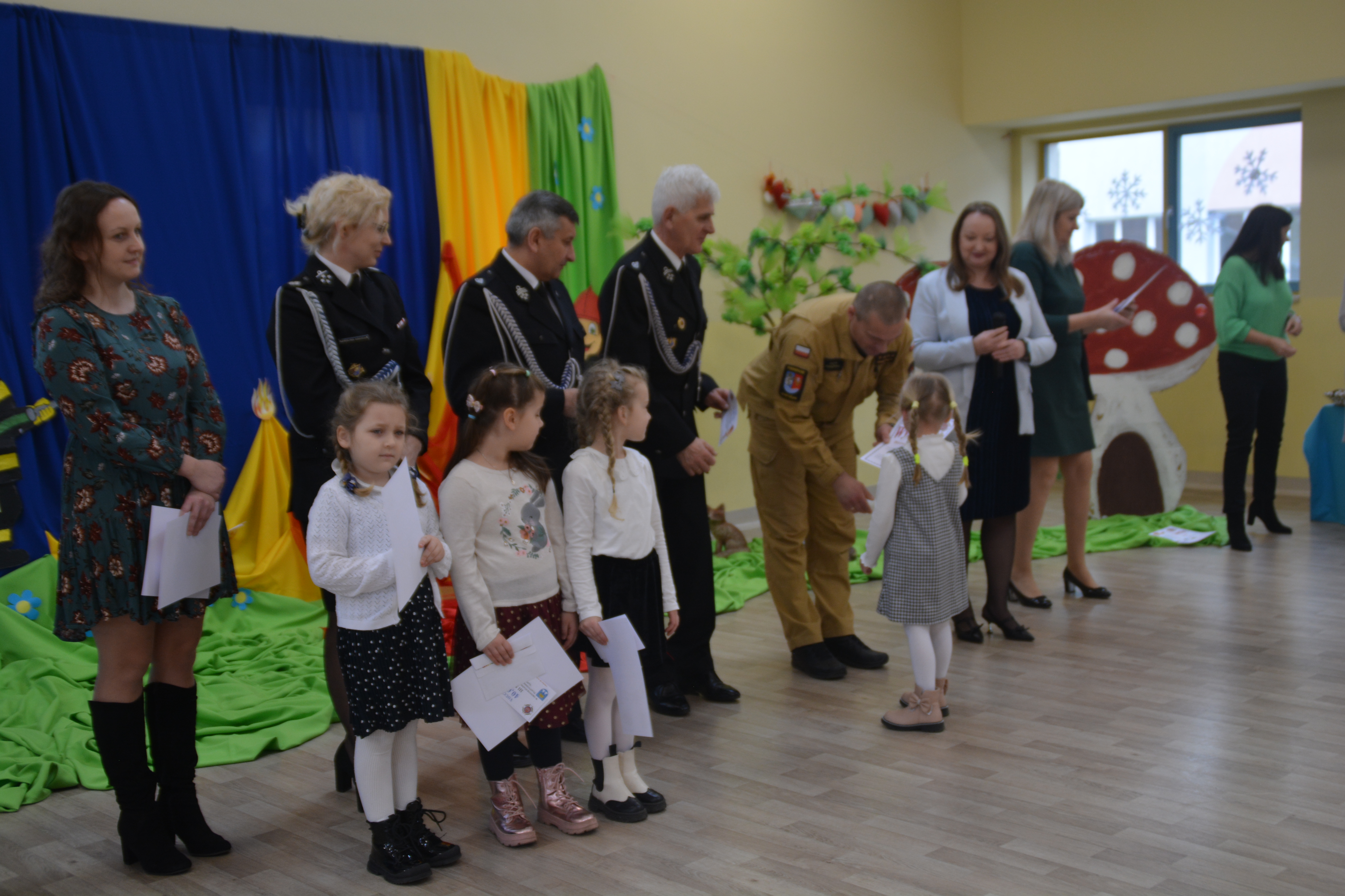 Nagrody uczniom wręczali: Dyrektor SP w Sarzynie- Pani Monika Milo, Prezes Zarządu Miejsko- Gminnego ZOSP RP w Nowej Sarzynie- dh Jan Pinderski, prezes Zarządu Oddziału Powiatowego ZOSP RP w Leżajsku- dh Jerzy Paul, dowódca JRG w Nowej Sarzynie - st. kap. Piotr Pinderski, prezes OSP Sarzyna- dh Karolina Adamiak.