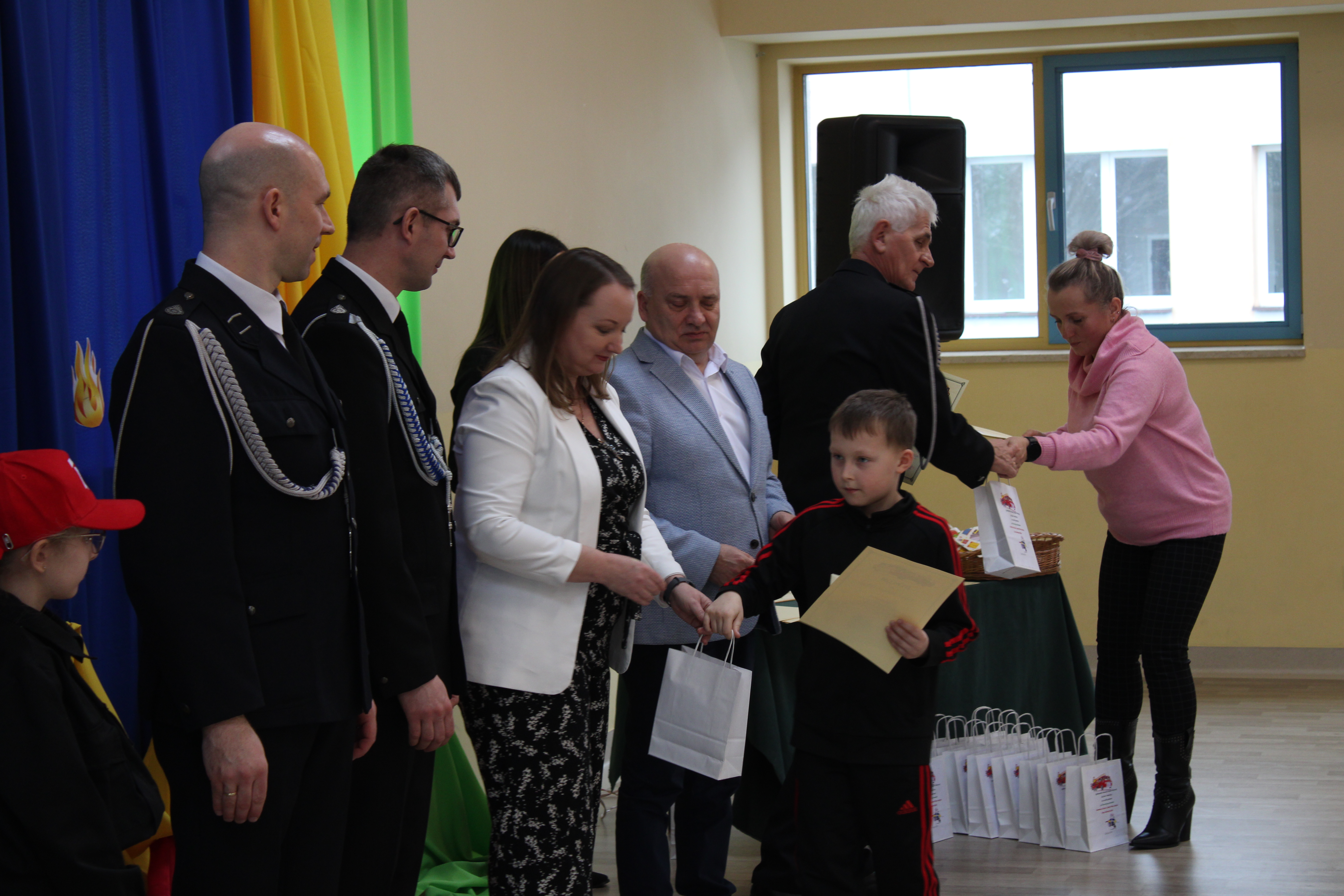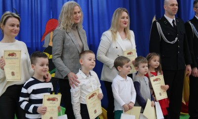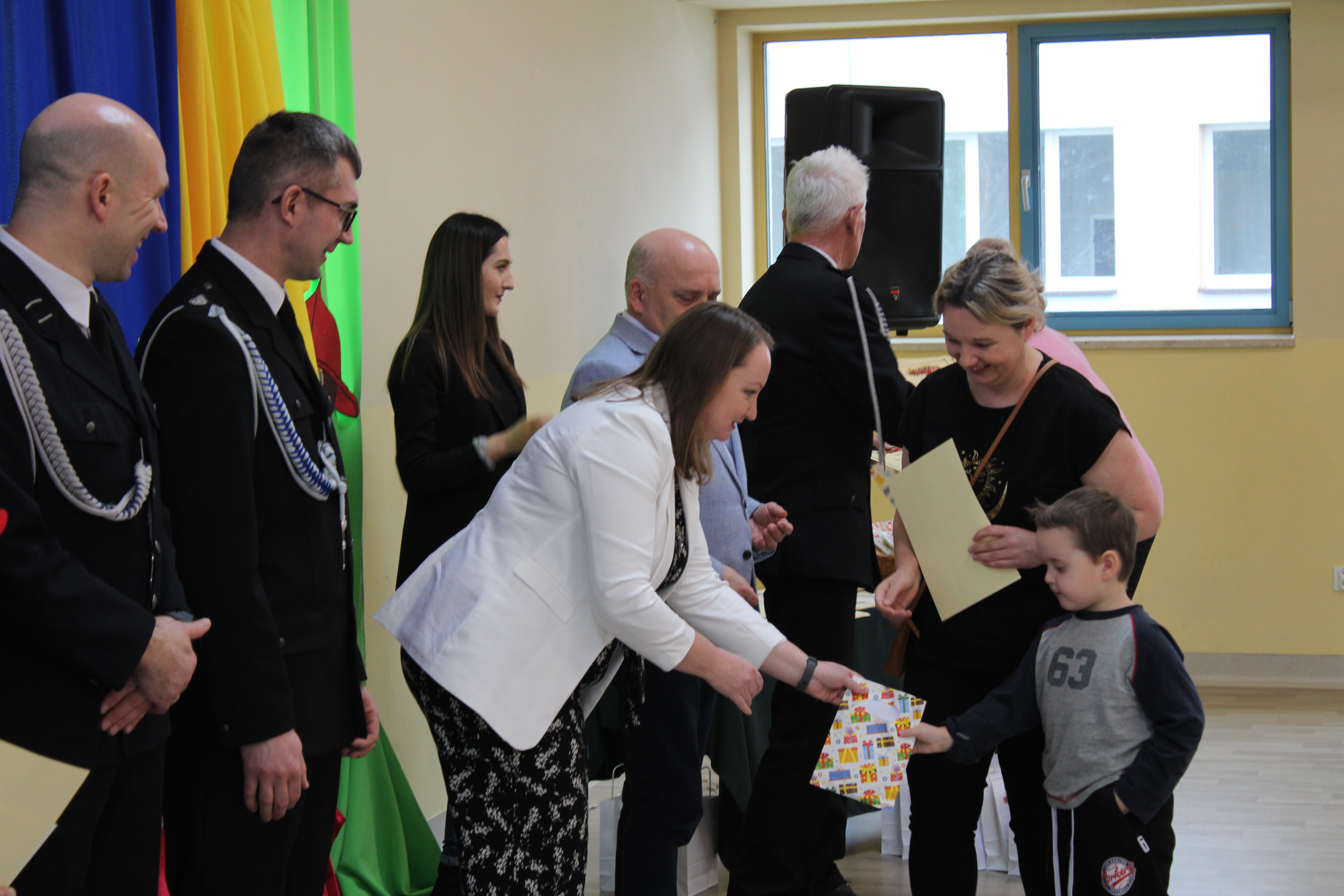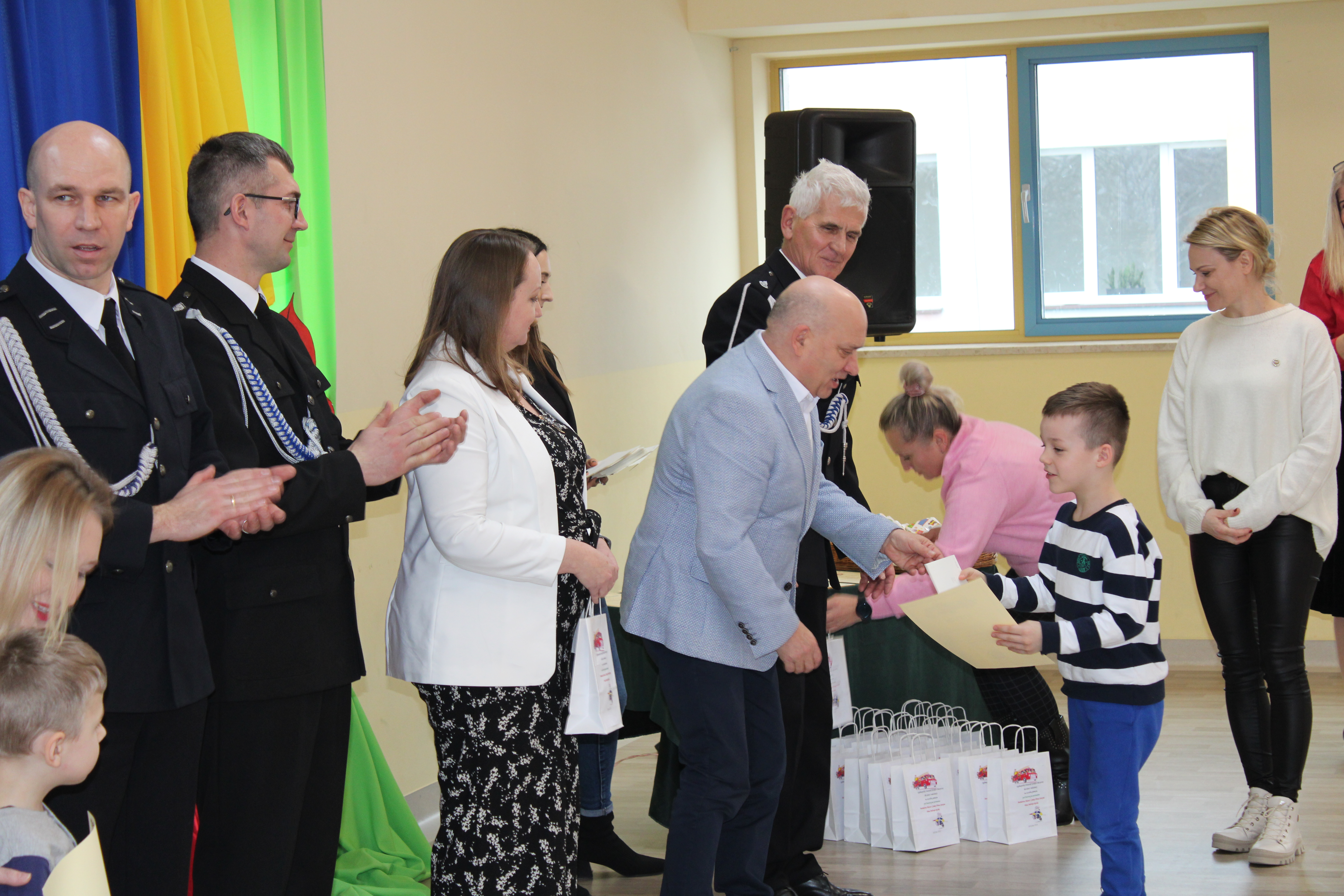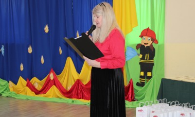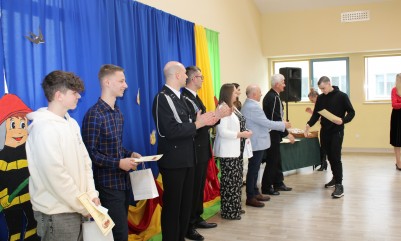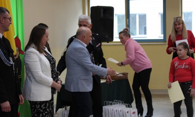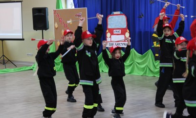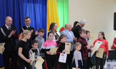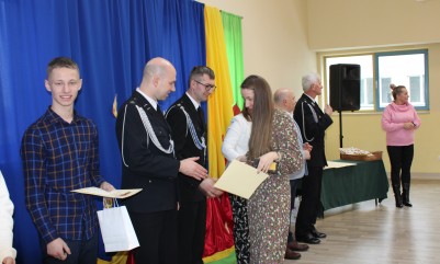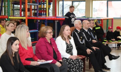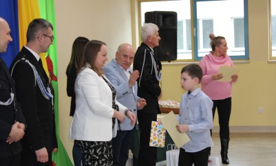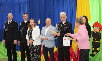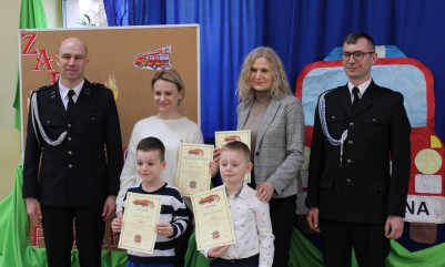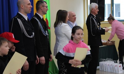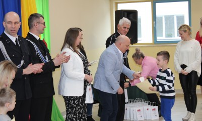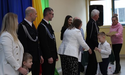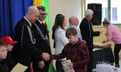 Wręczenie nagród poprzedziła prelekcja druha Damiana Żuczka dotycząca bezpieczeństwa przeciwpożarowego, po niej zaś zebrani obejrzeli występ małych strażaków oraz grupy tanecznej z SP w Sarzynie.