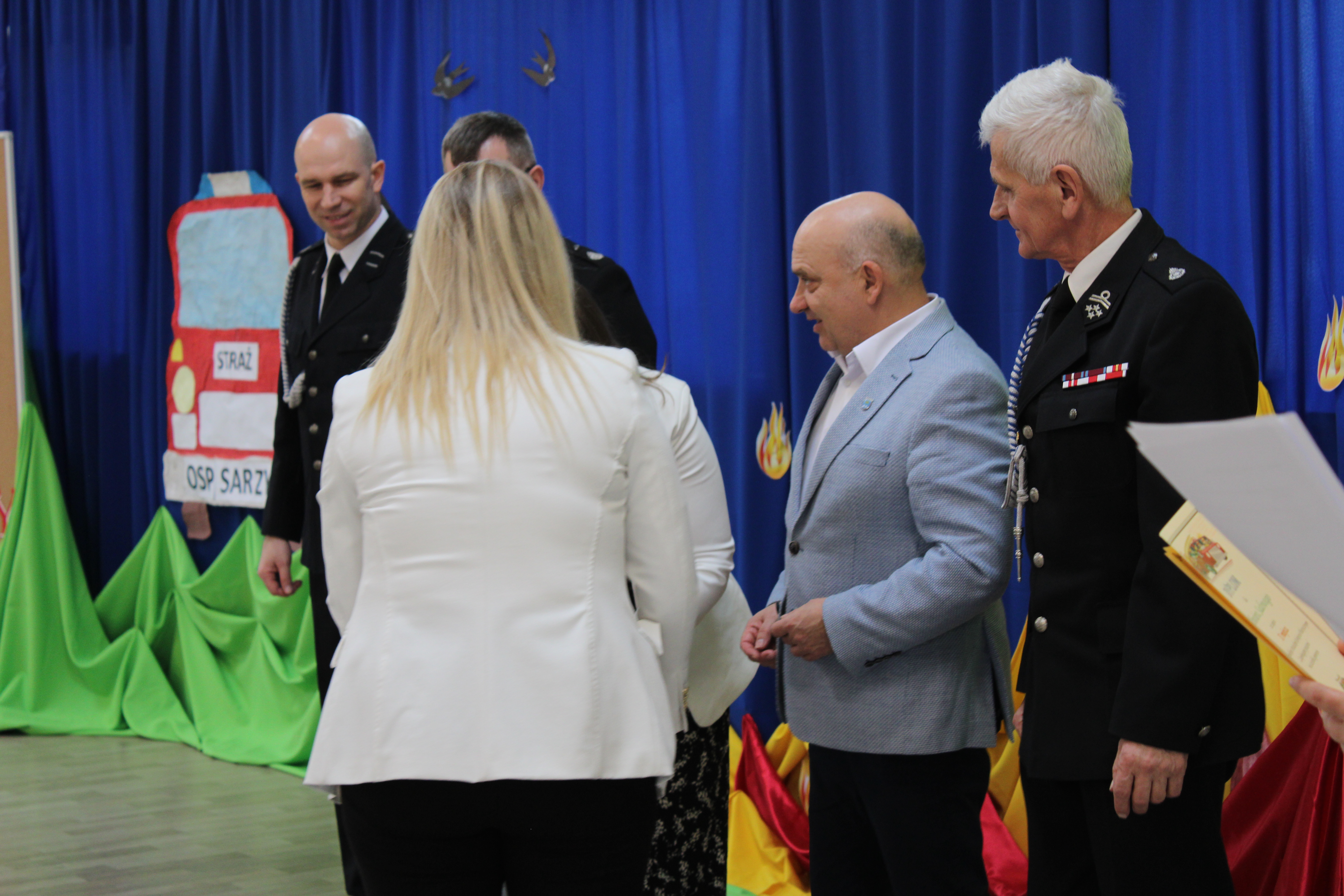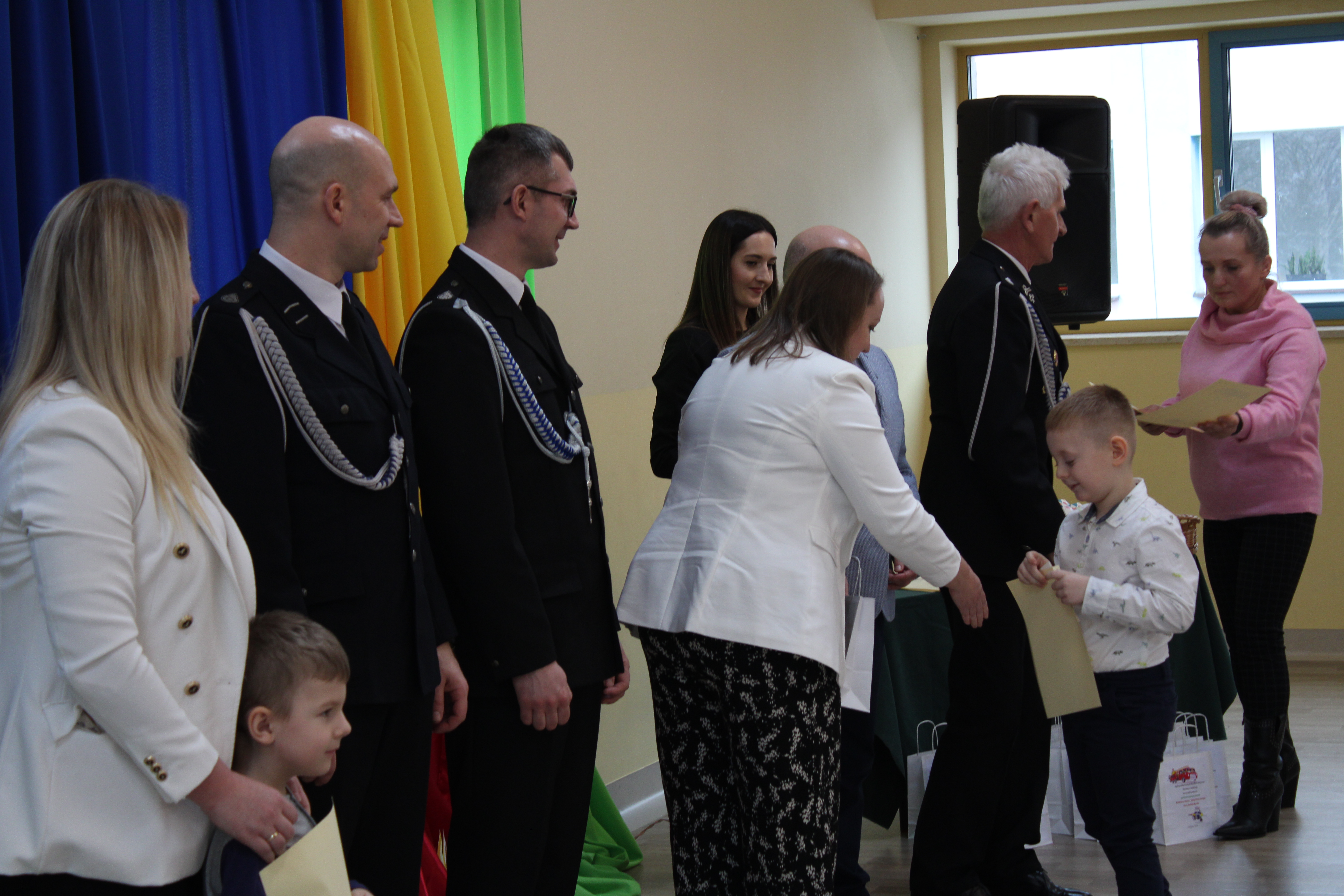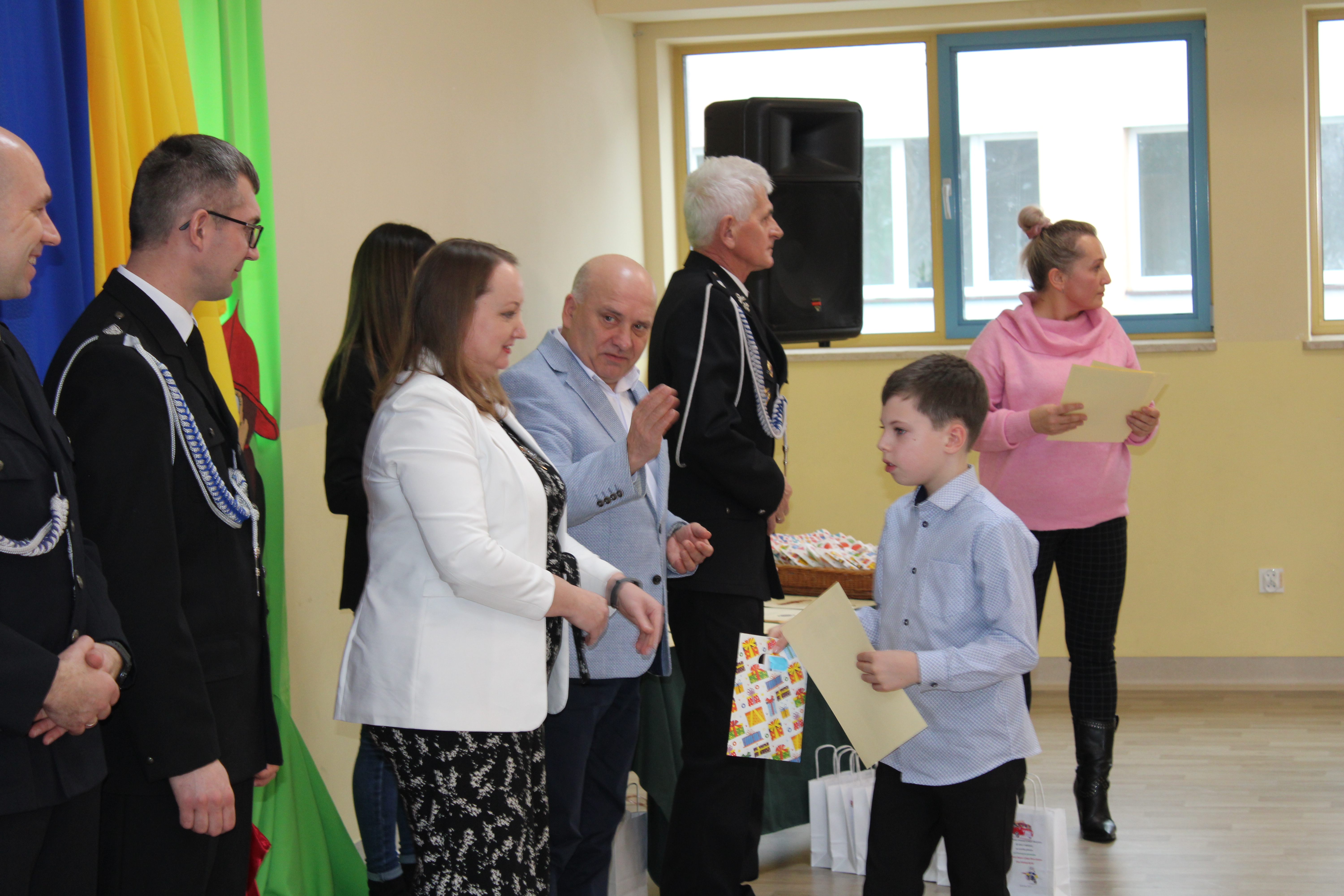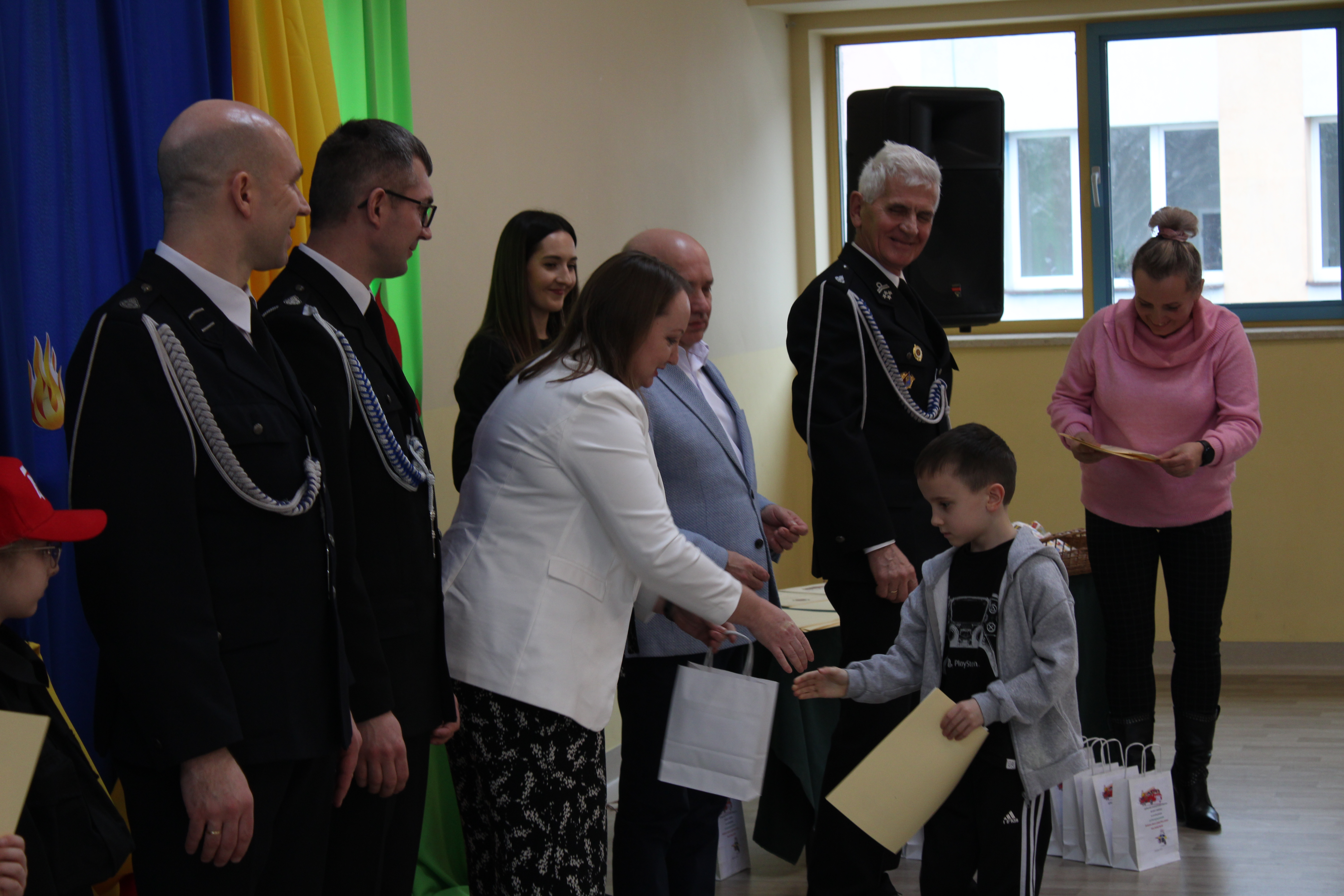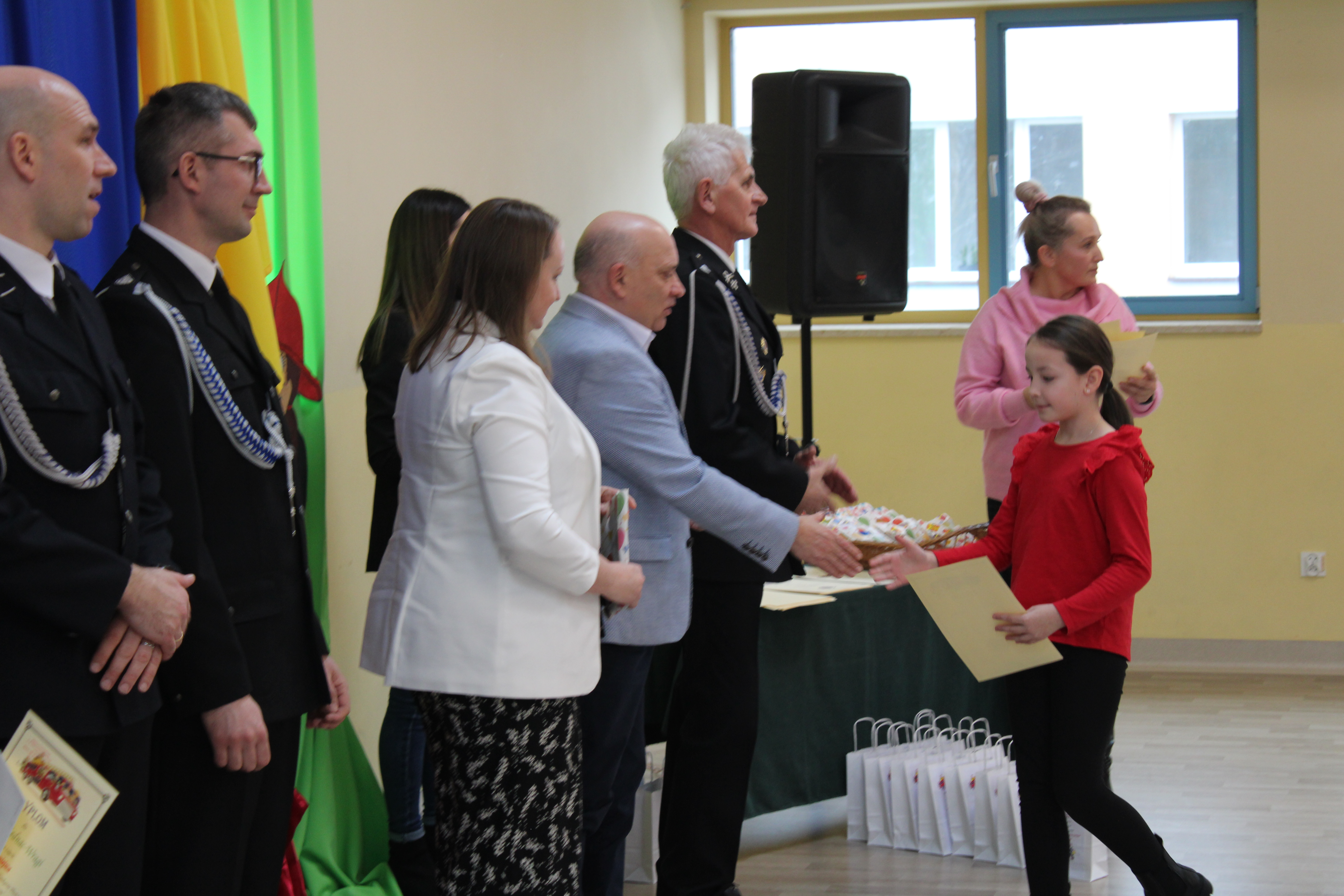 Wręczenie nagród poprzedziła prelekcja druha Damiana Żuczka dotycząca bezpieczeństwa przeciwpożarowego, po niej zaś zebrani obejrzeli występ małych strażaków oraz grupy tanecznej z SP w Sarzynie.
