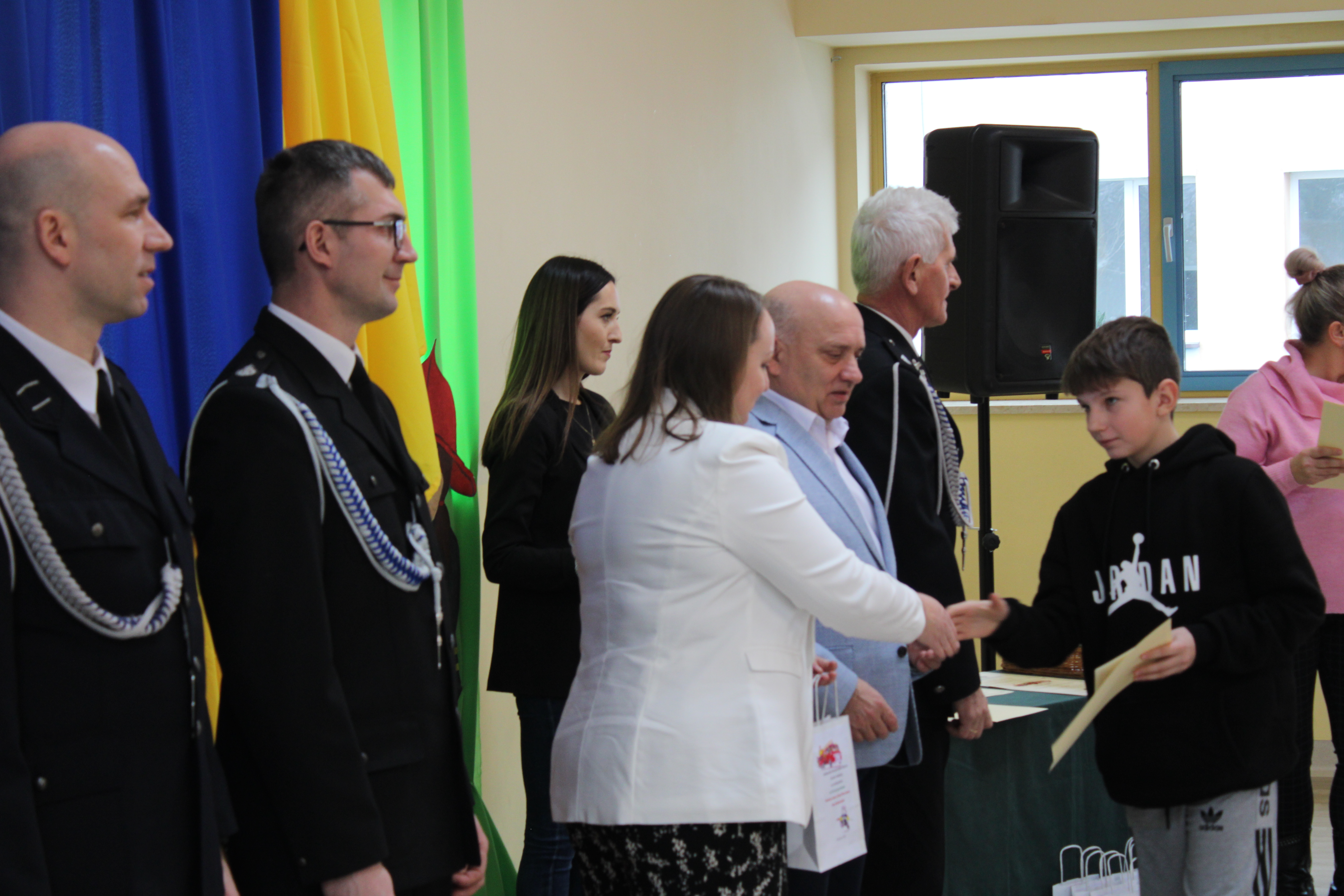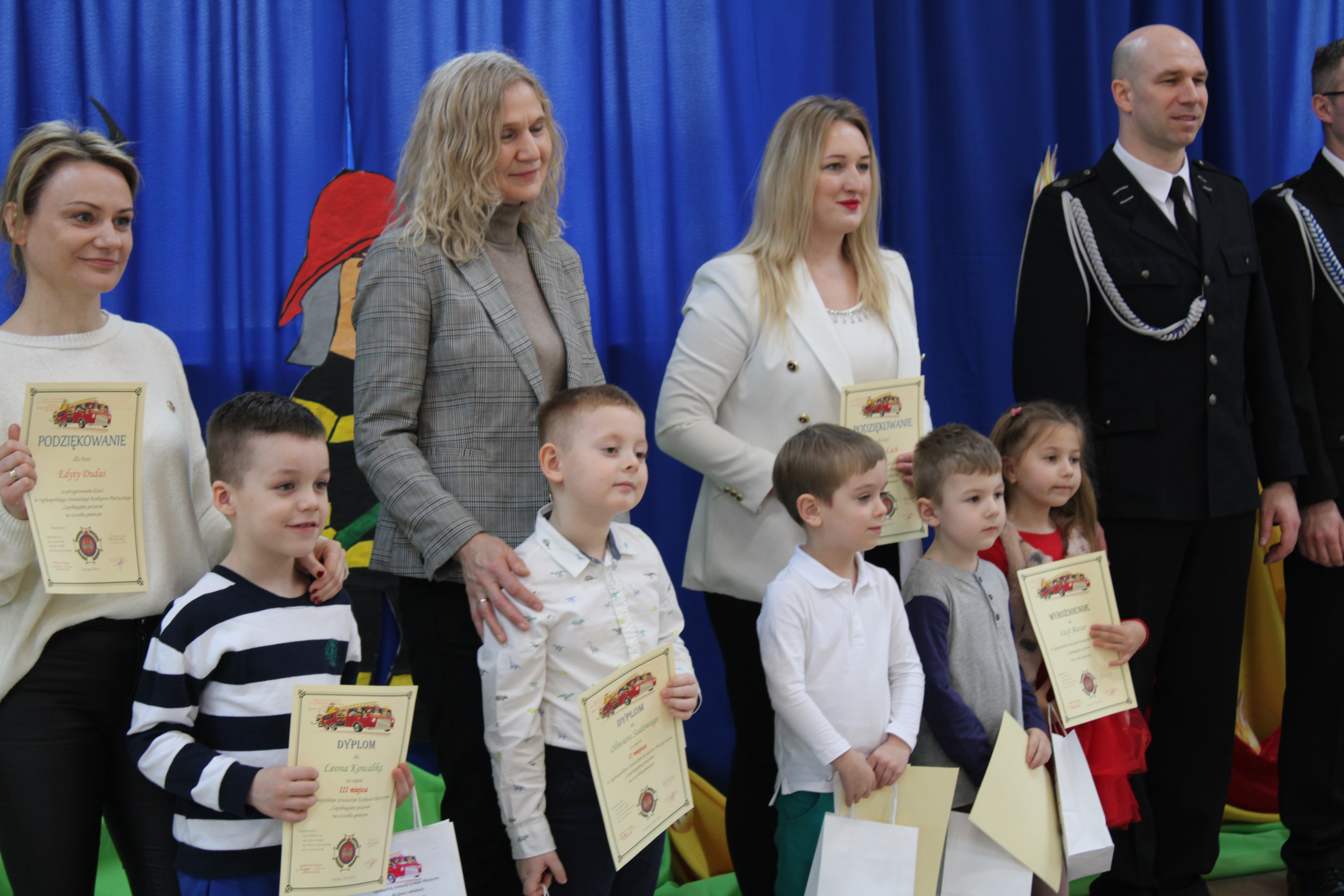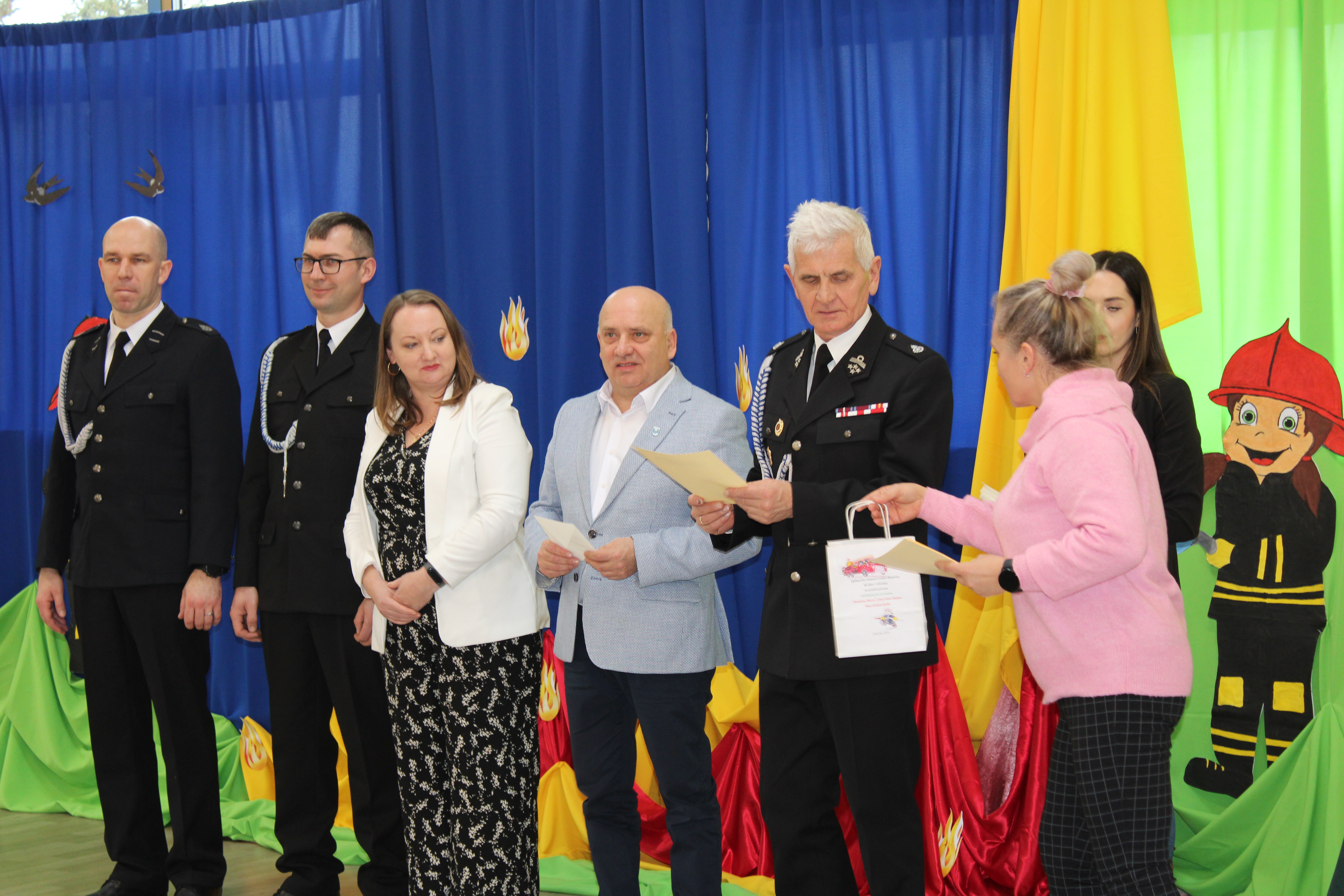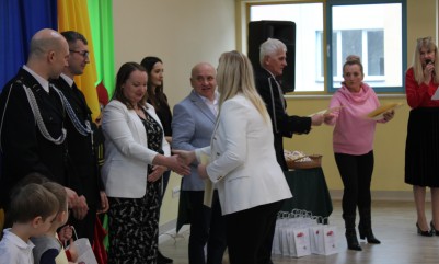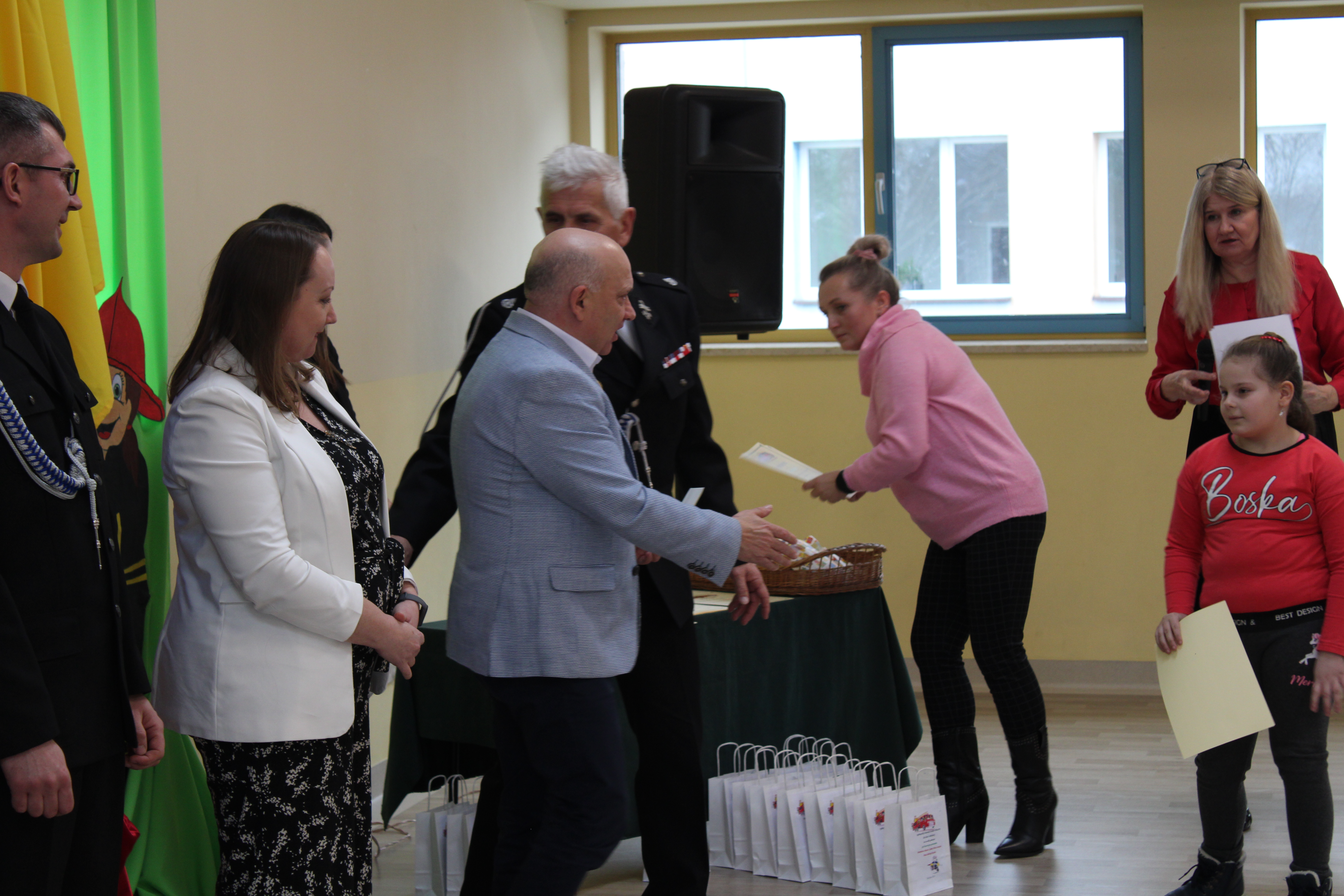 Wręczenie nagród poprzedziła prelekcja druha Damiana Żuczka dotycząca bezpieczeństwa przeciwpożarowego, po niej zaś zebrani obejrzeli występ małych strażaków oraz grupy tanecznej z SP w Sarzynie.