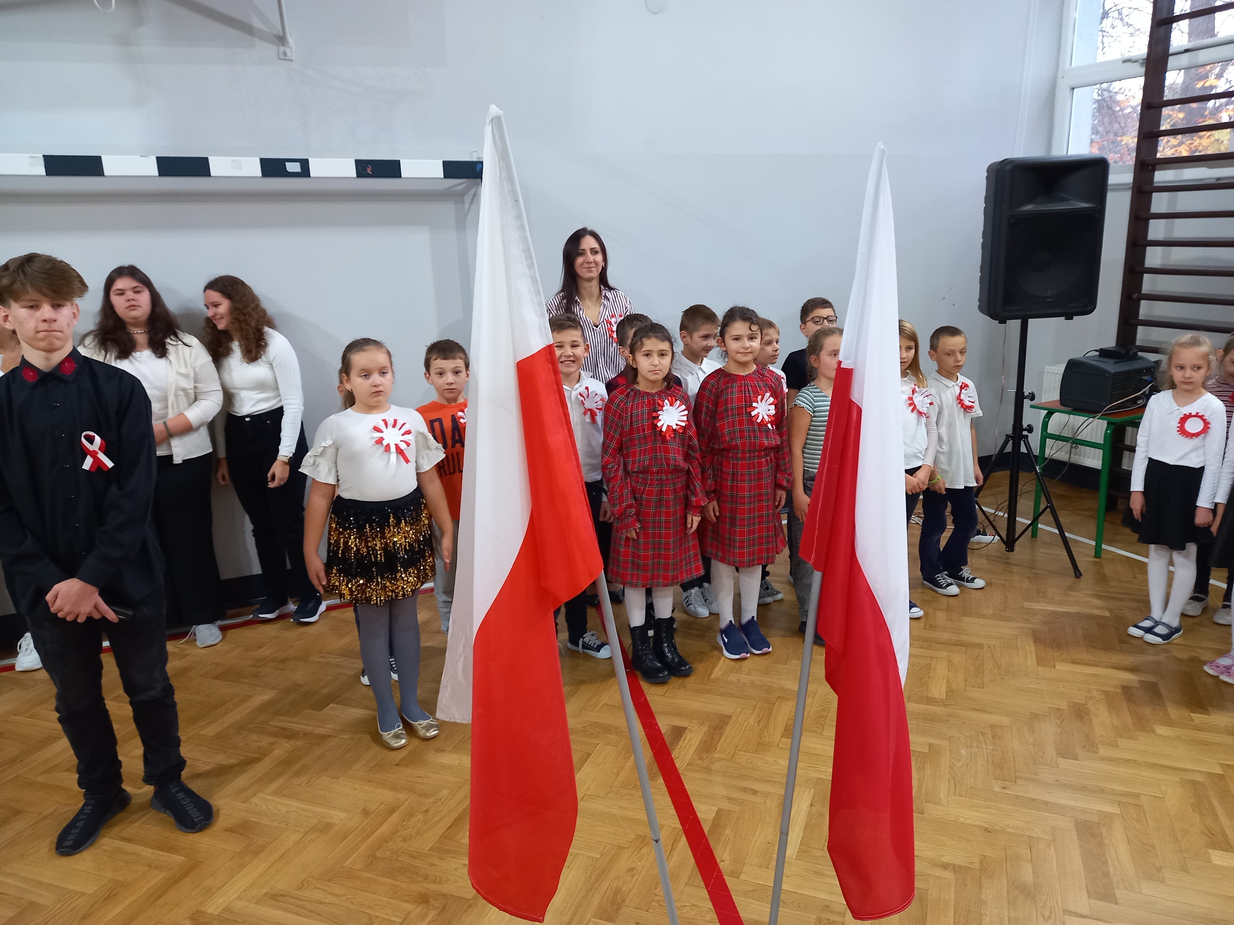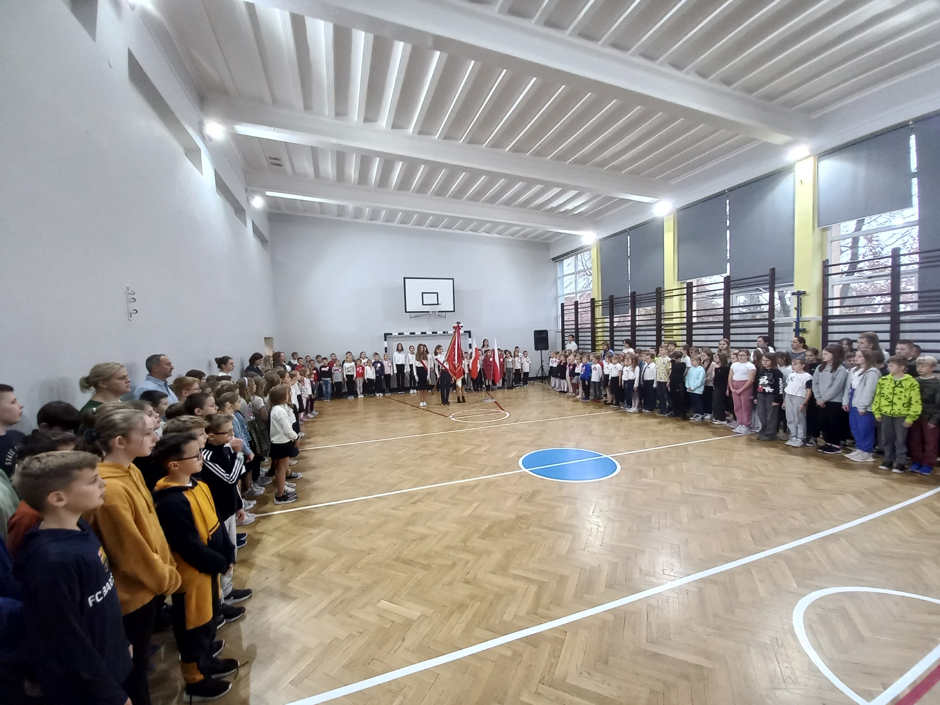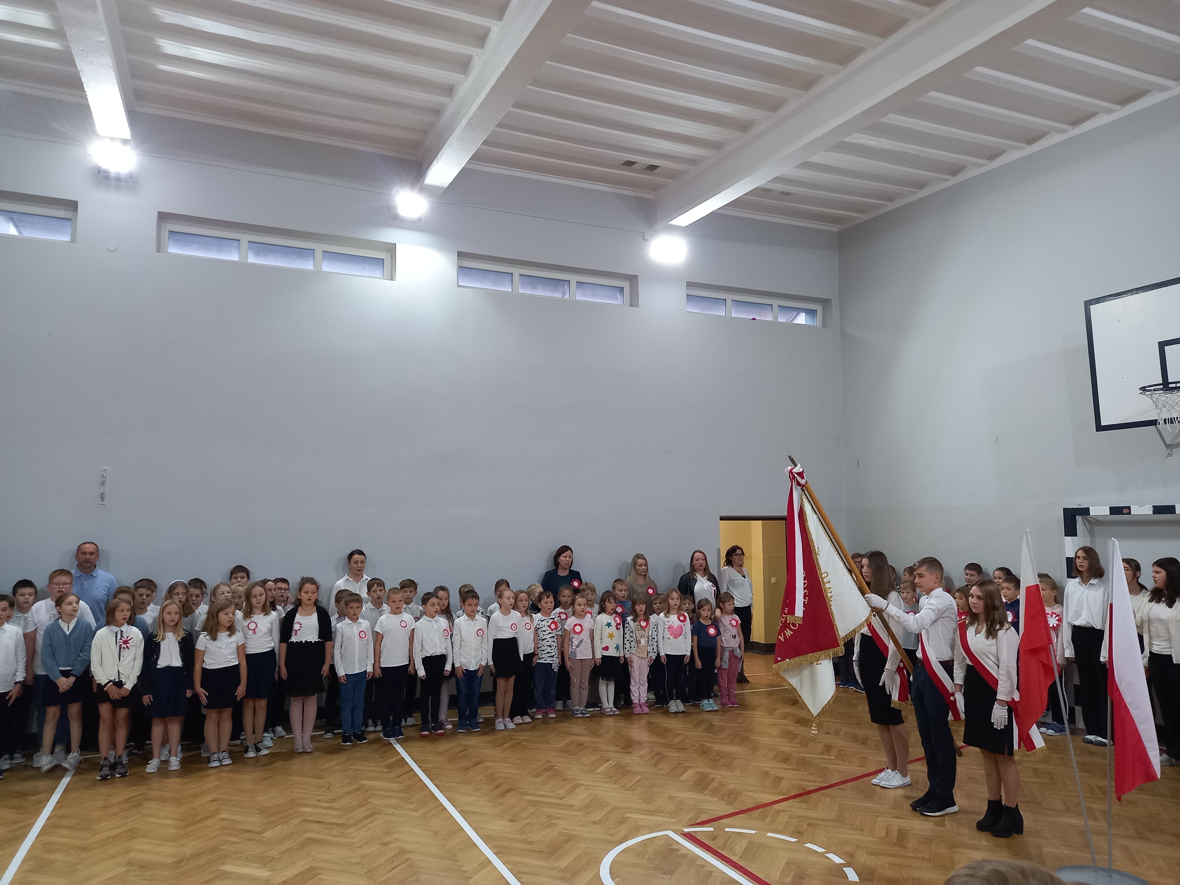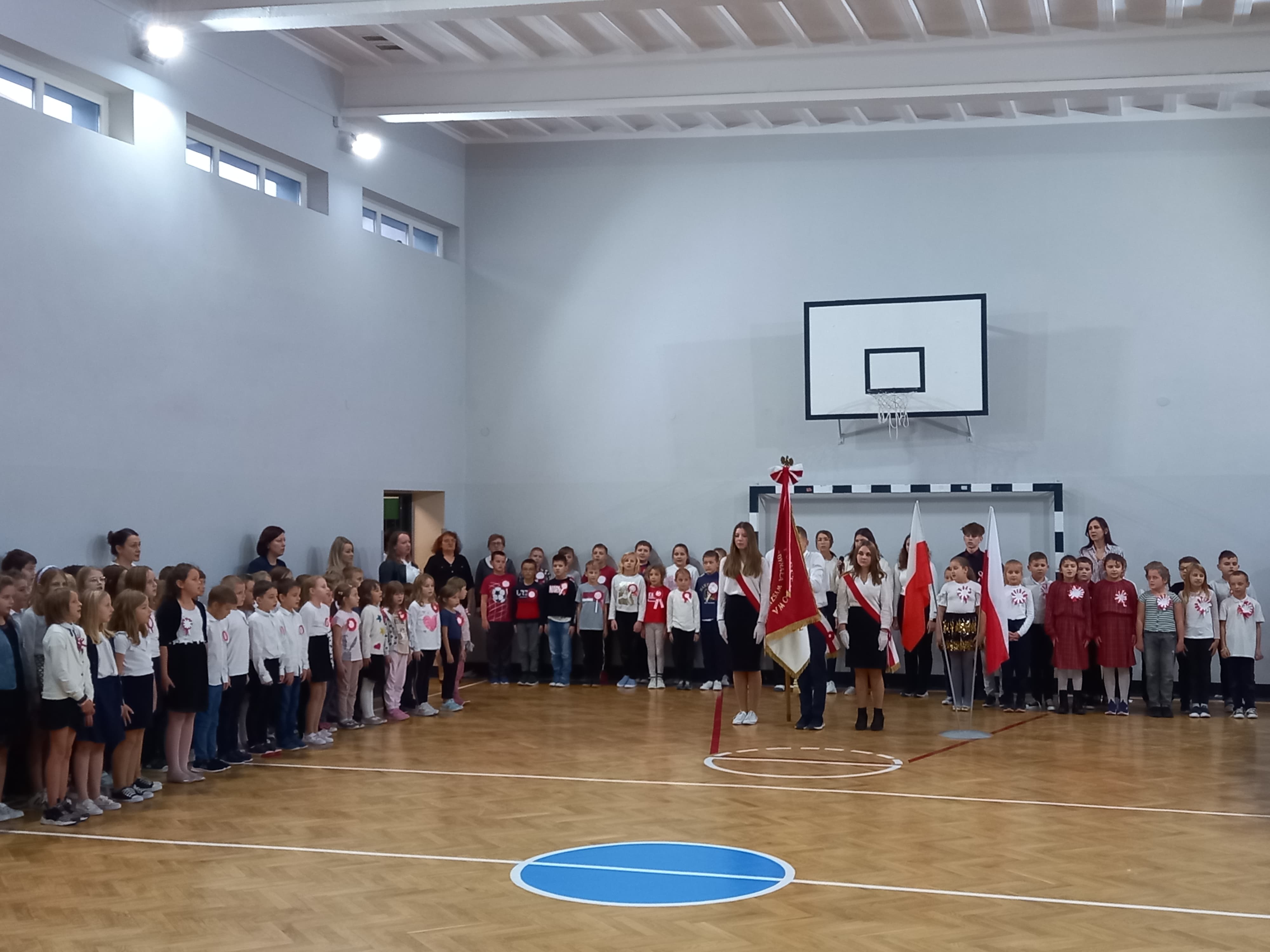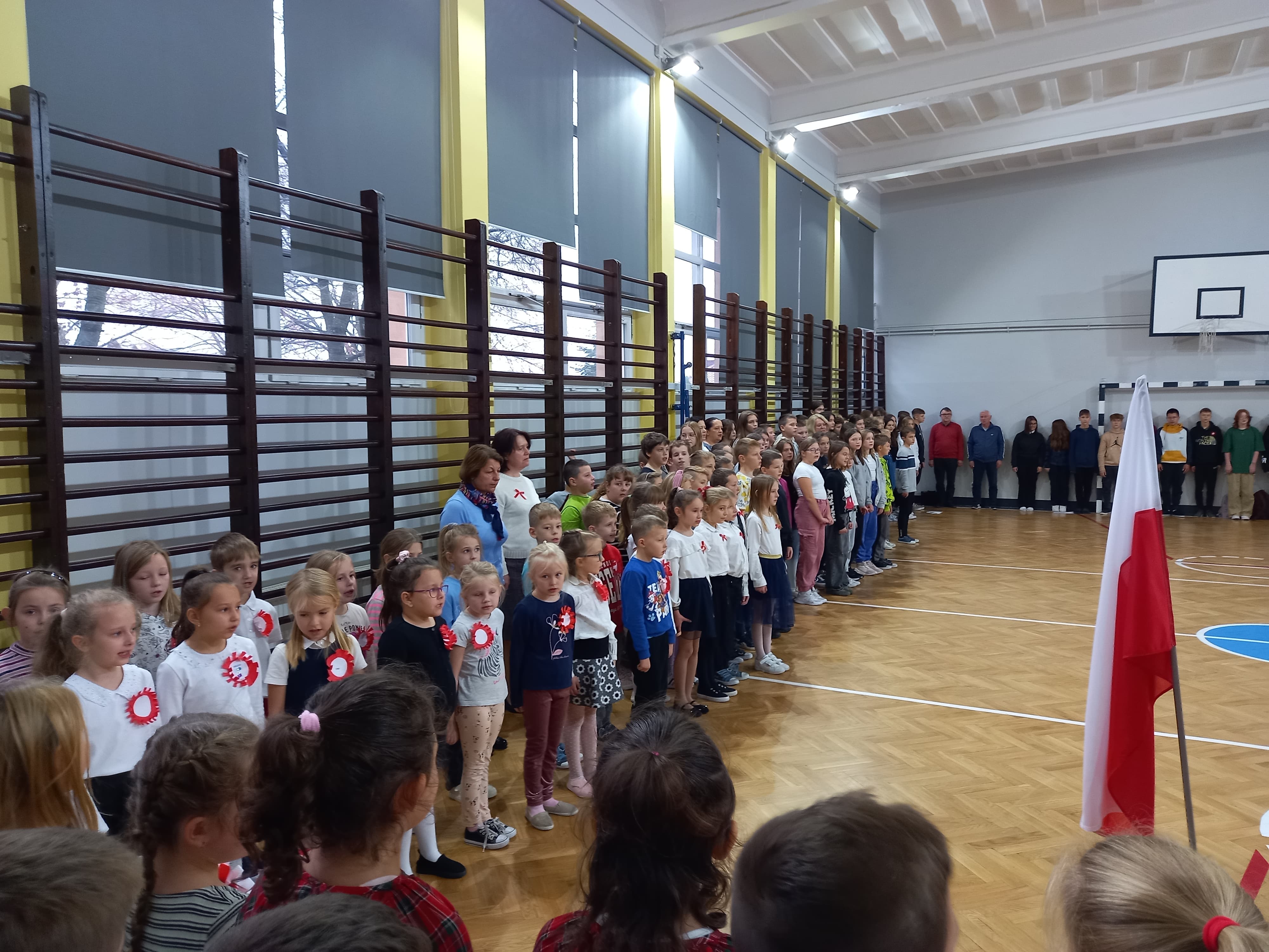 Cała społeczność szkolna wspólnie o godzinie 11:11 uroczyście odśpiewała hymn narodowy, czym uczciła 104. rocznicę odzyskania przez Polskę niepodległości.
