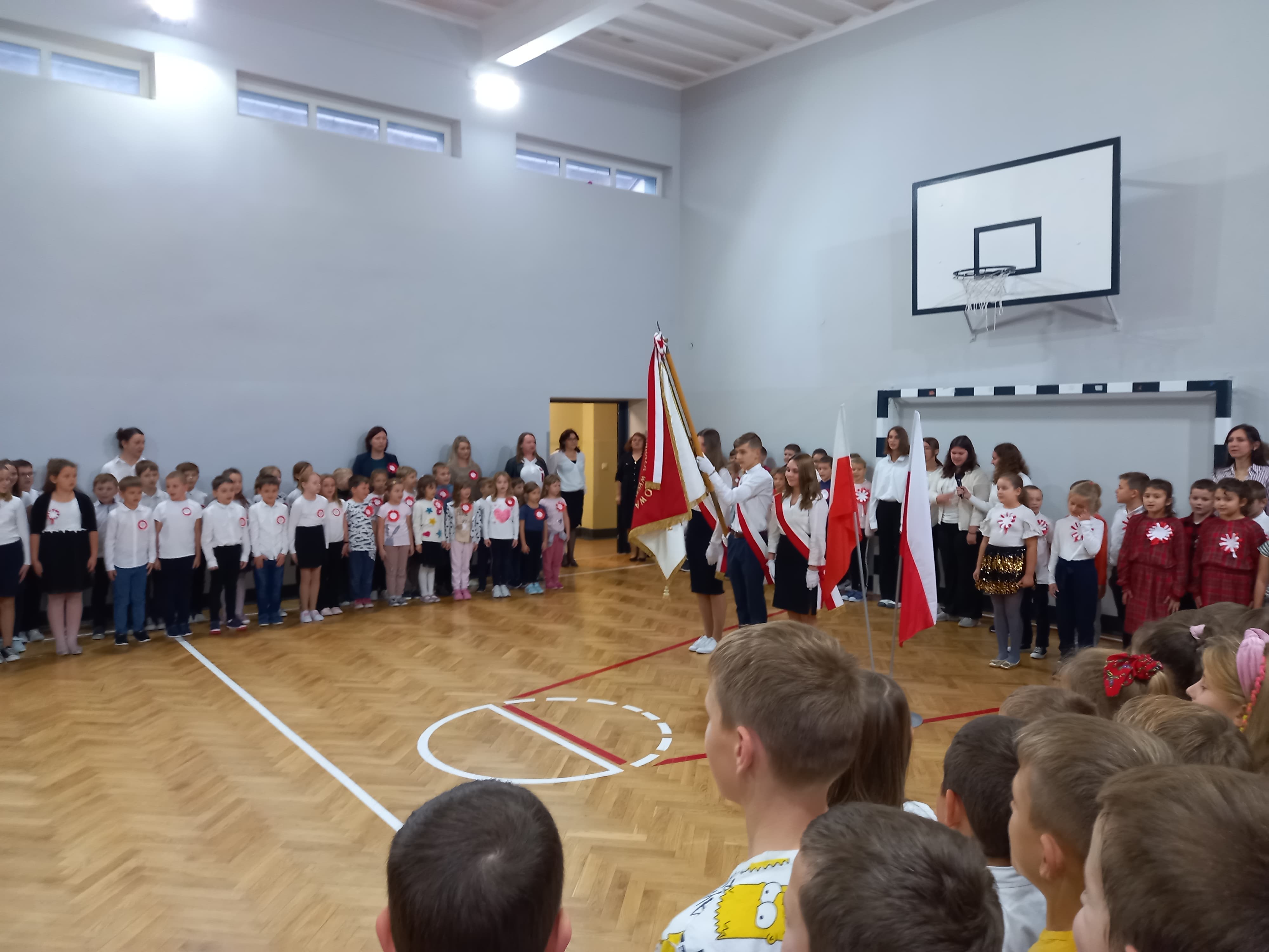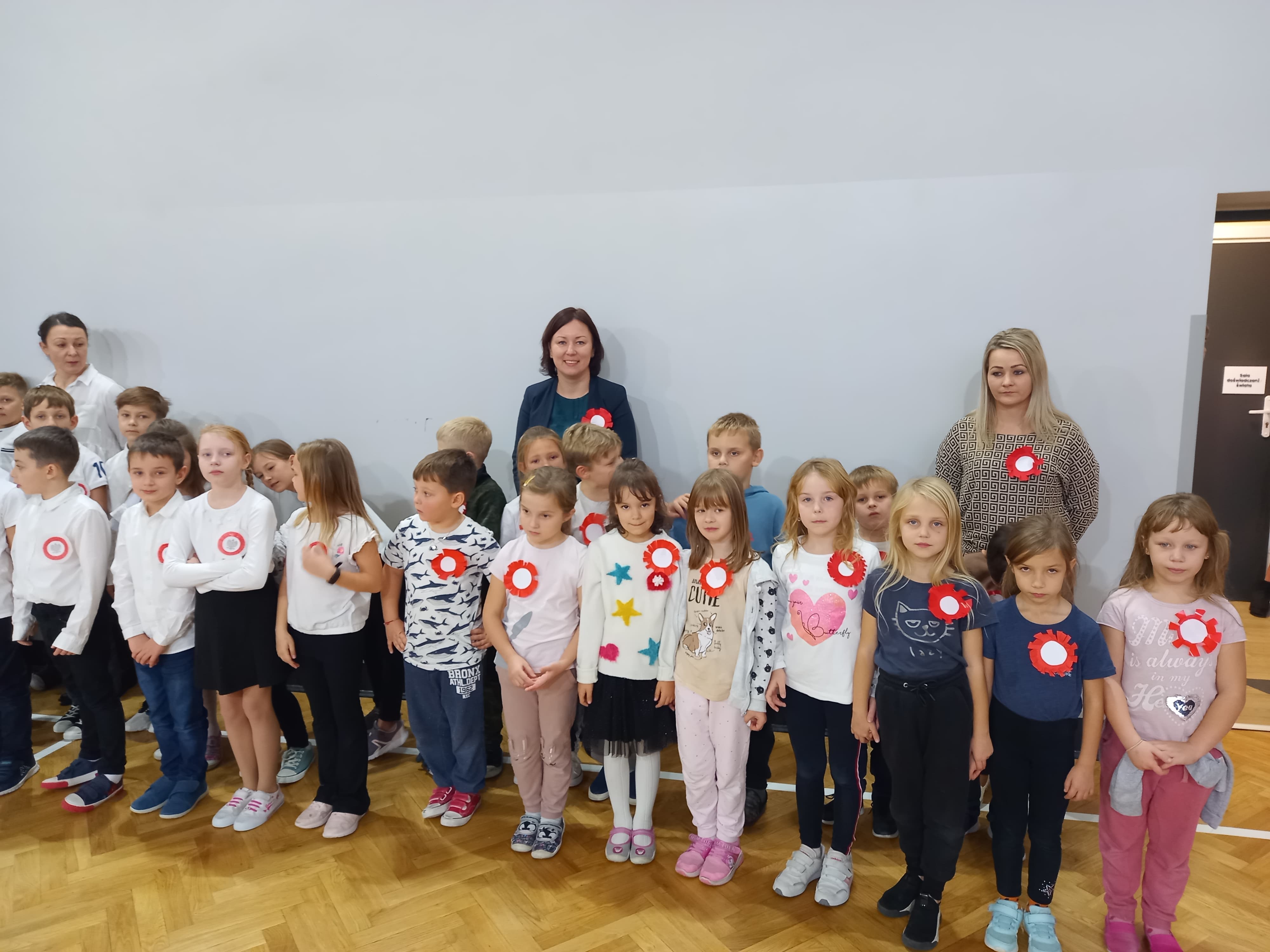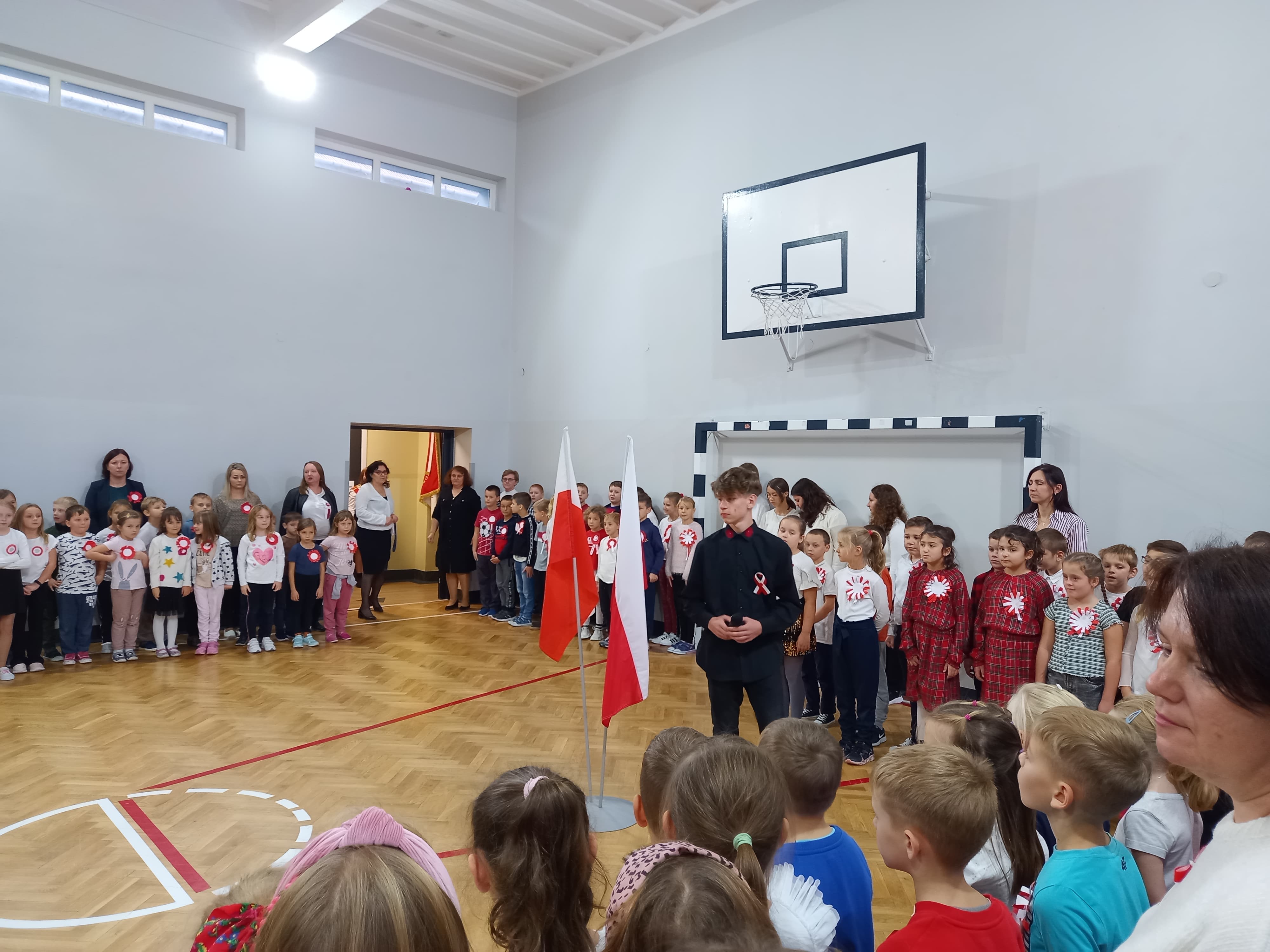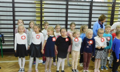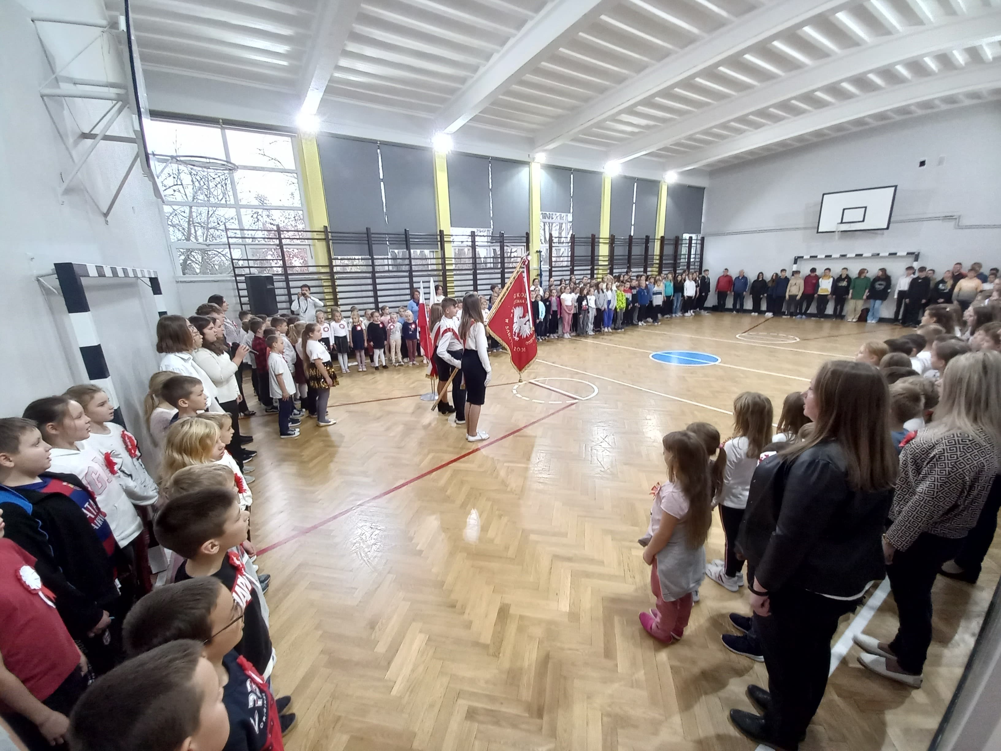 Cała społeczność szkolna wspólnie o godzinie 11:11 uroczyście odśpiewała hymn narodowy, czym uczciła 104. rocznicę odzyskania przez Polskę niepodległości.