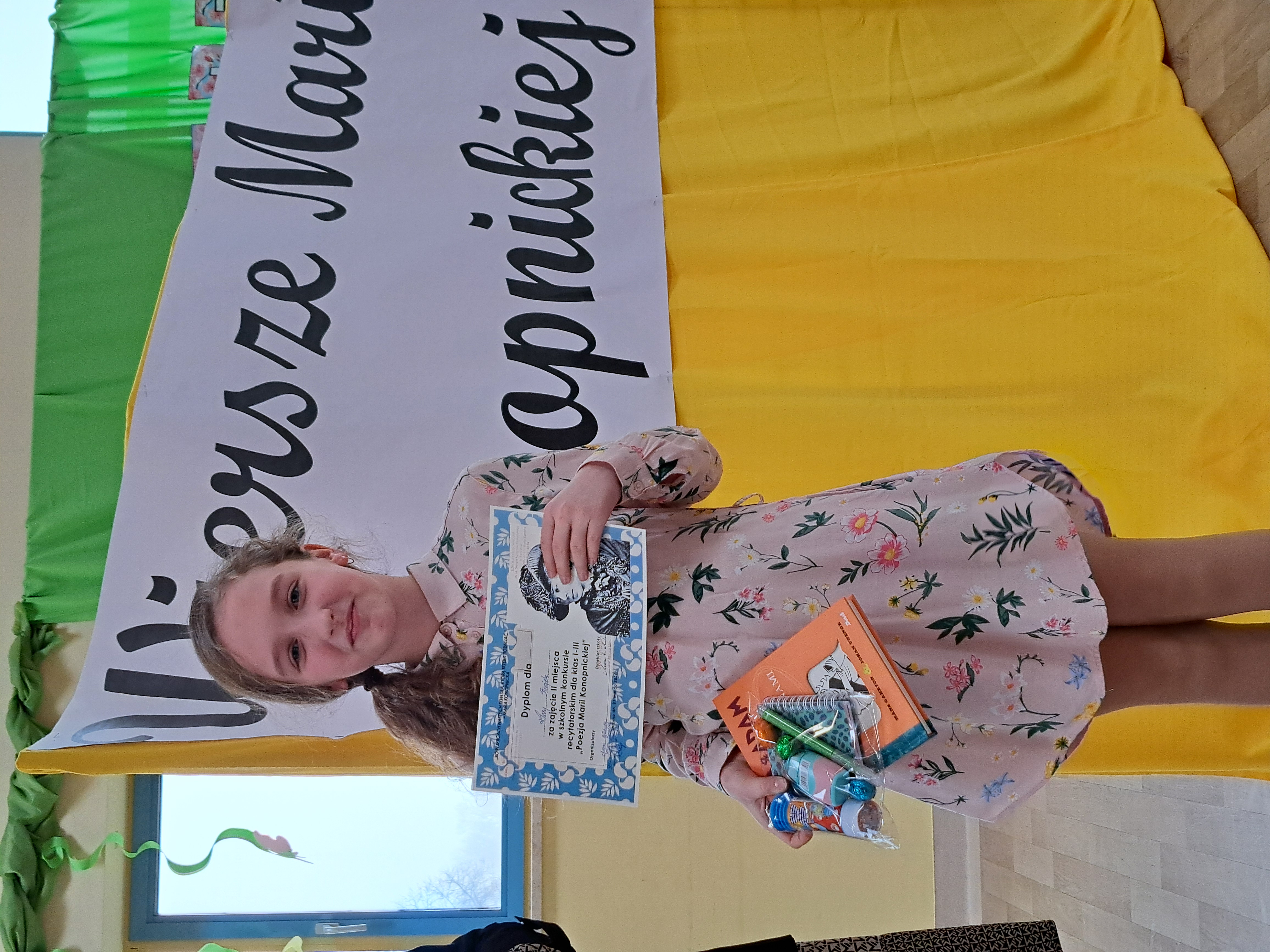 Miejsce II - Borkowska Nel z kl.2b za wiersz „Pranie”